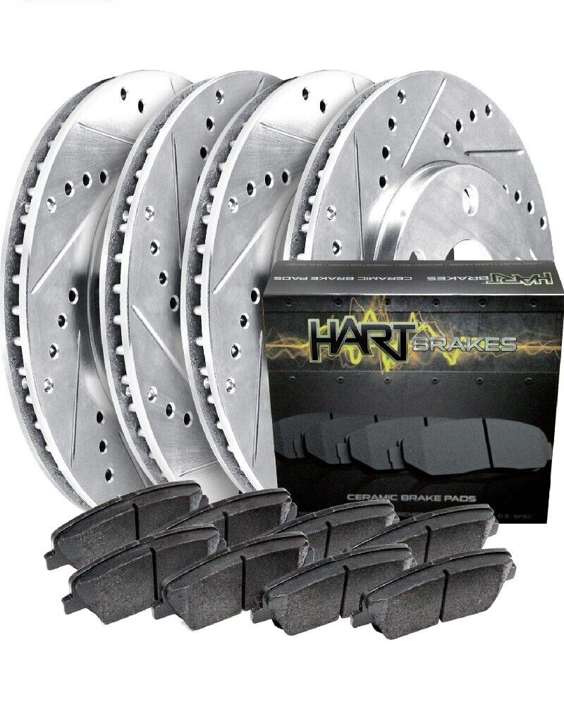 Hart Brakes For Hyundai Kia Front Rear Drilled Slotted Rotors w Ceramic Pads NOS