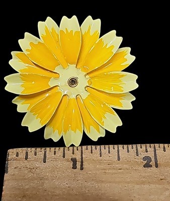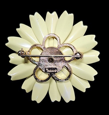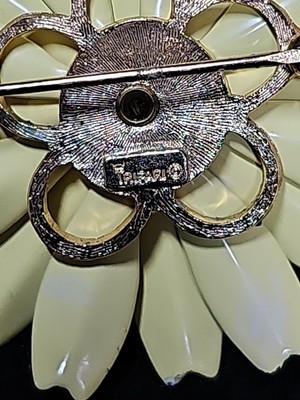 UP FOR SALE: Vintage Crown Trifari Enamel Flower Brooch - Yellow and White - AS IS