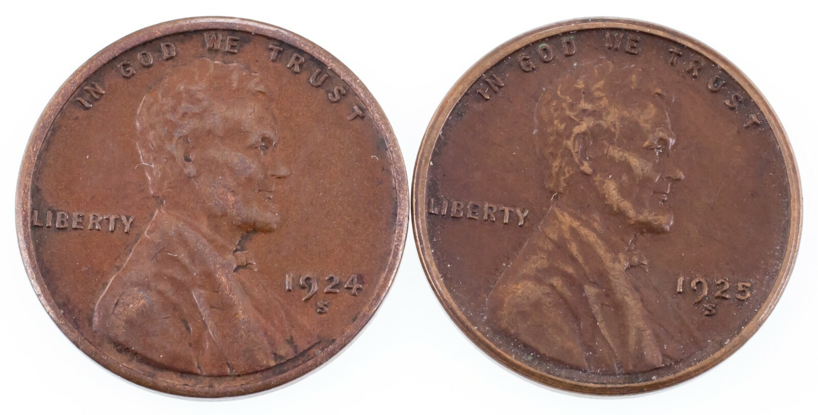 Lot de 2 cents Lincoln (1924 et 1925) -S XF Condition, toute couleur brune