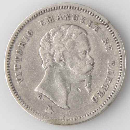 1860-G Italian States Emilia 50 Centesimi (Very Fine+) Provisional Coinage KM#11 1860-G//FIRENZE Italian States, Emilia 50 Centesimi (provisional coinage) Issued before the rule of Victor Emmanuel II, King of Italy (1861-1878) Obverse features a bust of the king, facing right, with legend VITTORIO EMANUELE RE ELETTO Reverse depicts a crowned shield of Savoy arms, with collar of order and within laurel wreath Minted in [FIRENZE] Florence, Italy Mintage of 2,430,000 coins Struck from 0.900 silver Condition: Very Fine+ (VF+) Catalog number: KM#11 (previously Tuscany C#84), Cud.-1069 *Condition descriptions are approximate. Please see photos for the actual item you are bidding on. Visit Our Store: Continental Coin and Jewelry California Buyers: Continental Coin and Jewelry Company Web Dep