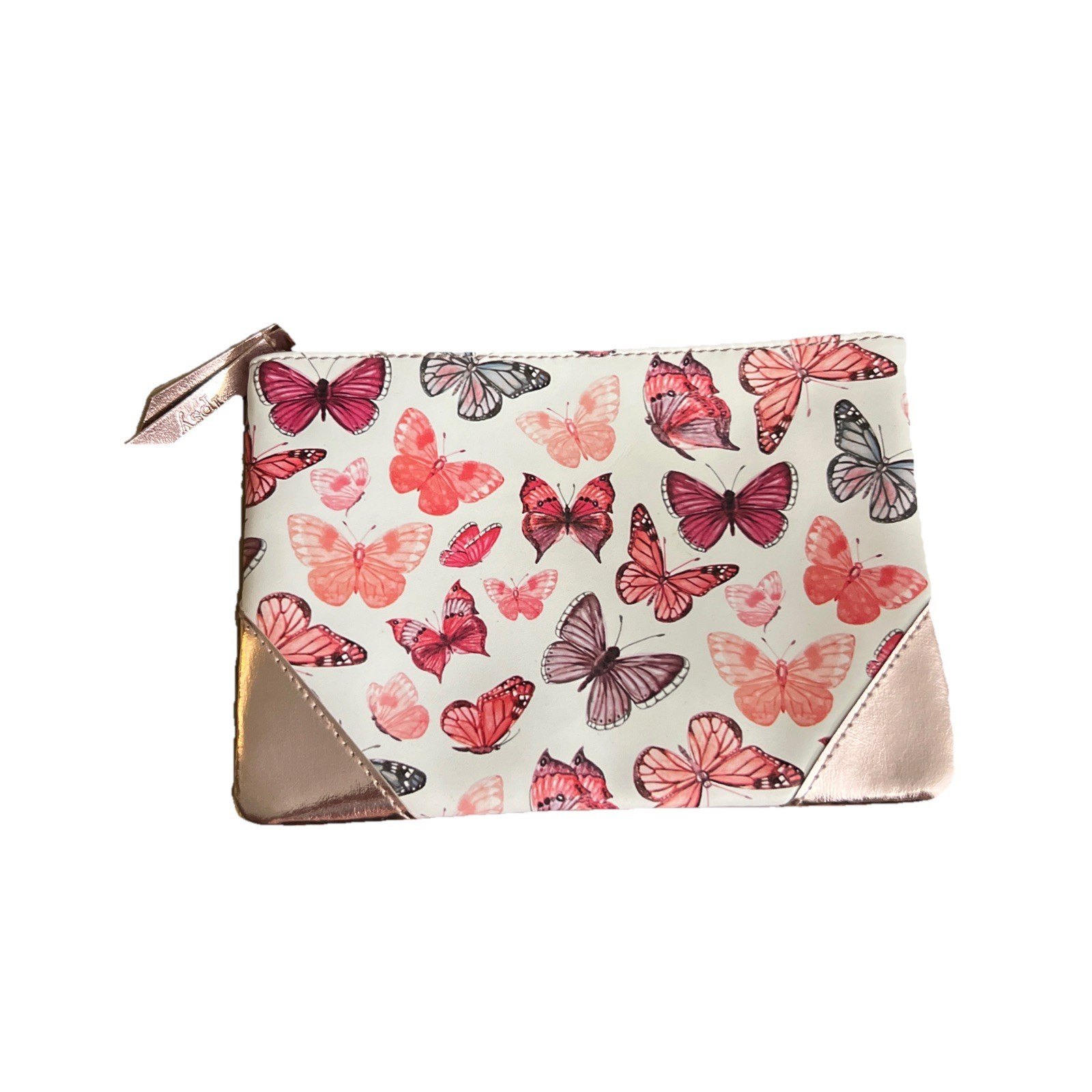Ipsy Makeup Cosmetic Bag Zip Up Butterfly Faux Leather Travel Bag New 7” x 5”