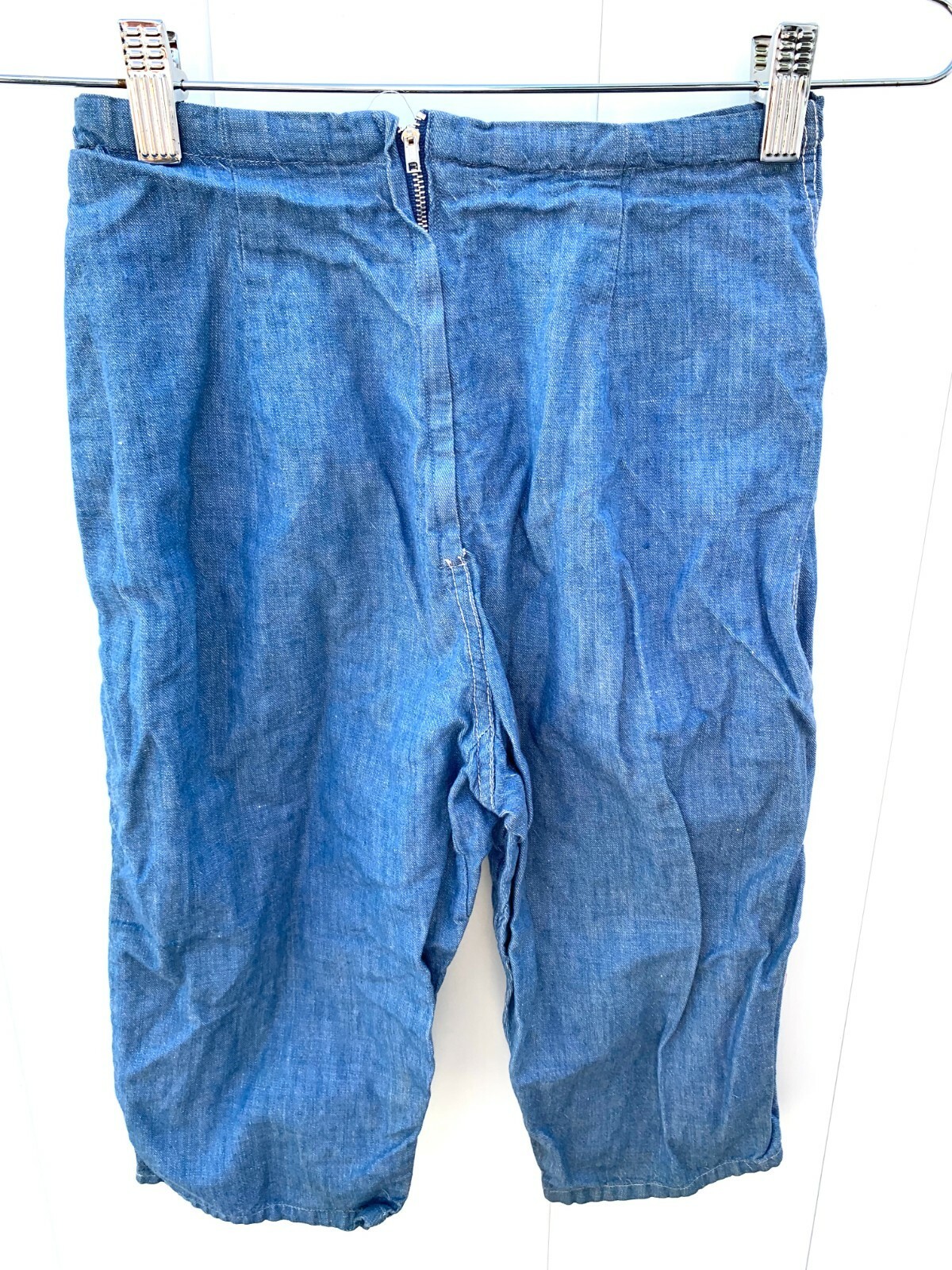1940s 50s Womens Pedal Pushers XS Cotton Denim Back Zip High Waist Shorts