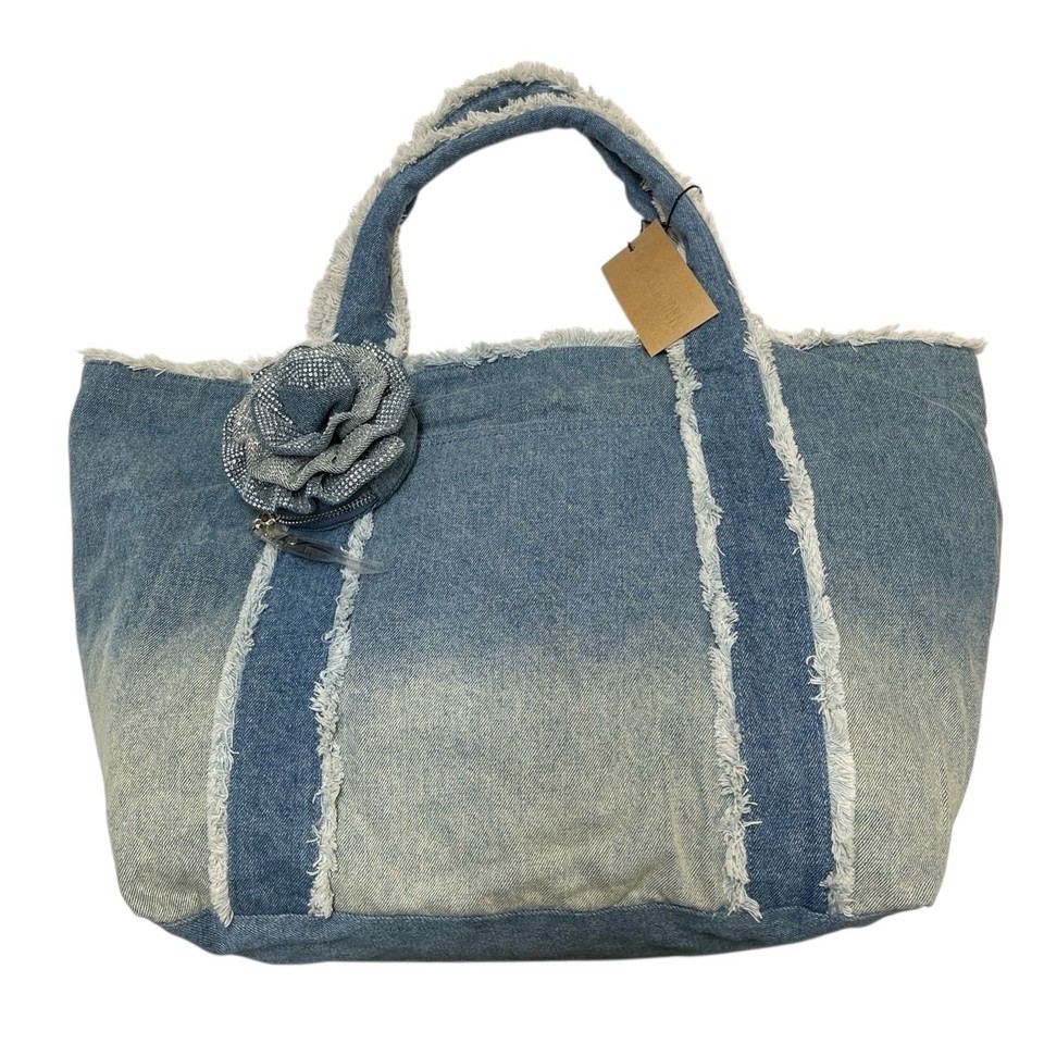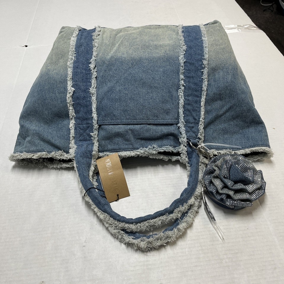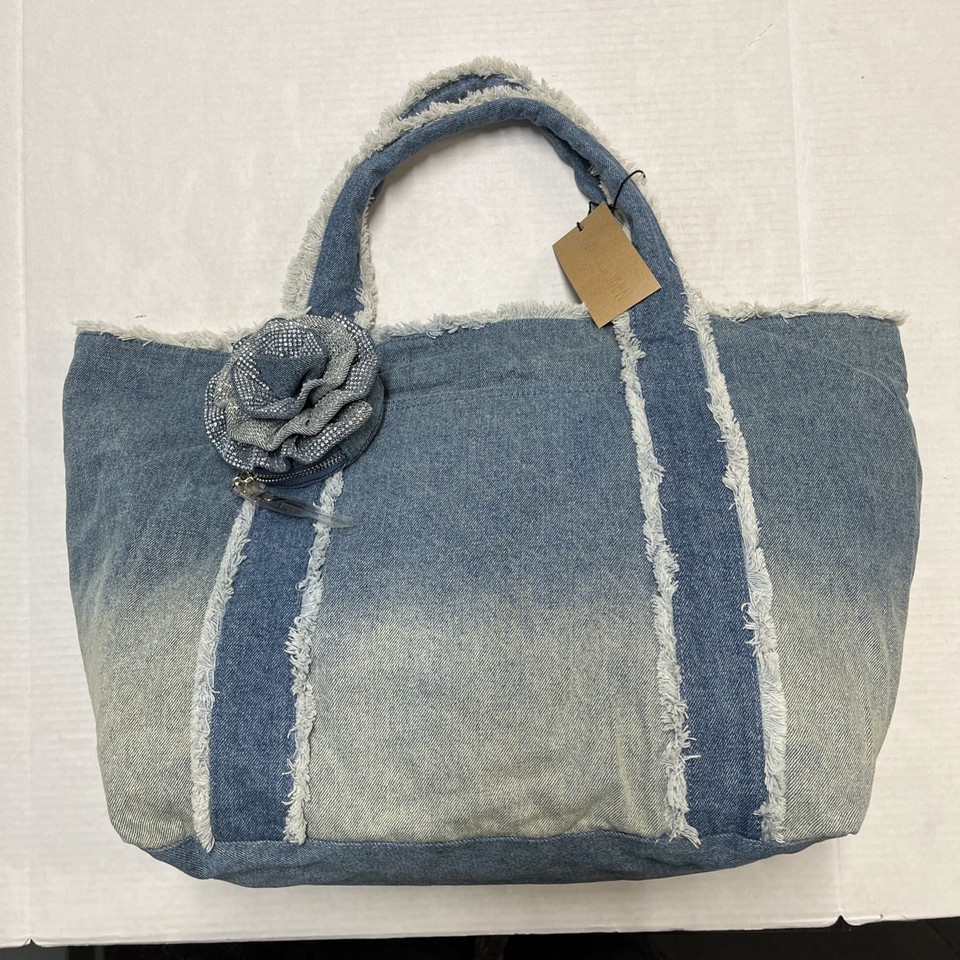 Steve Madden Y2K Tote Bag BBecki Distressed Blue Denim Flower Wristlet Wallet