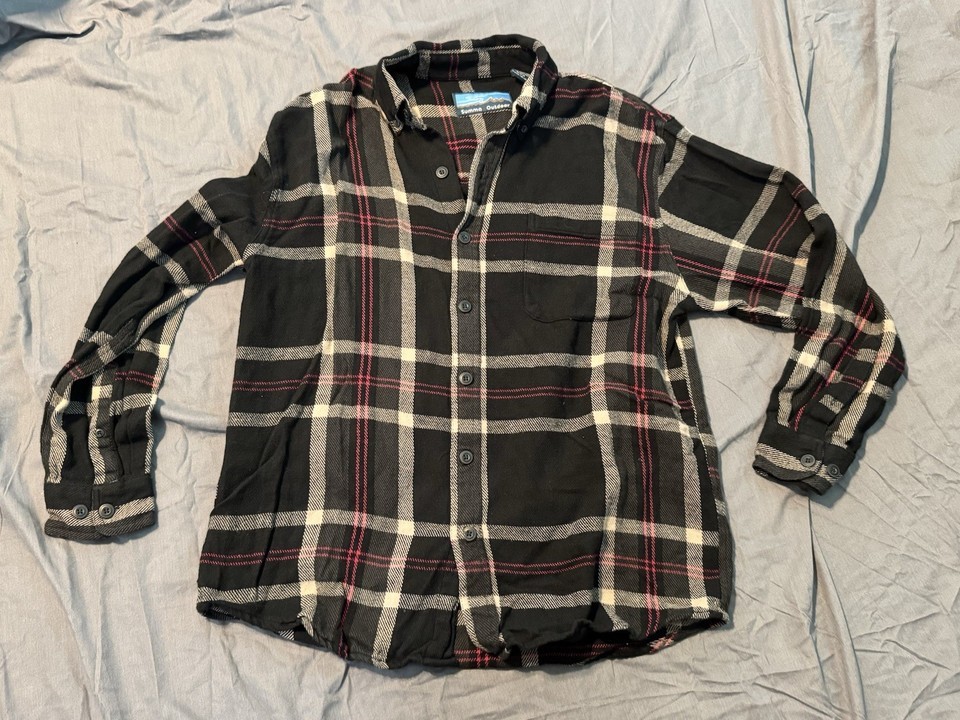 Summa Outdoor Black Red Plaid Button Front Flannel Shirt 100% Cotton Size M
