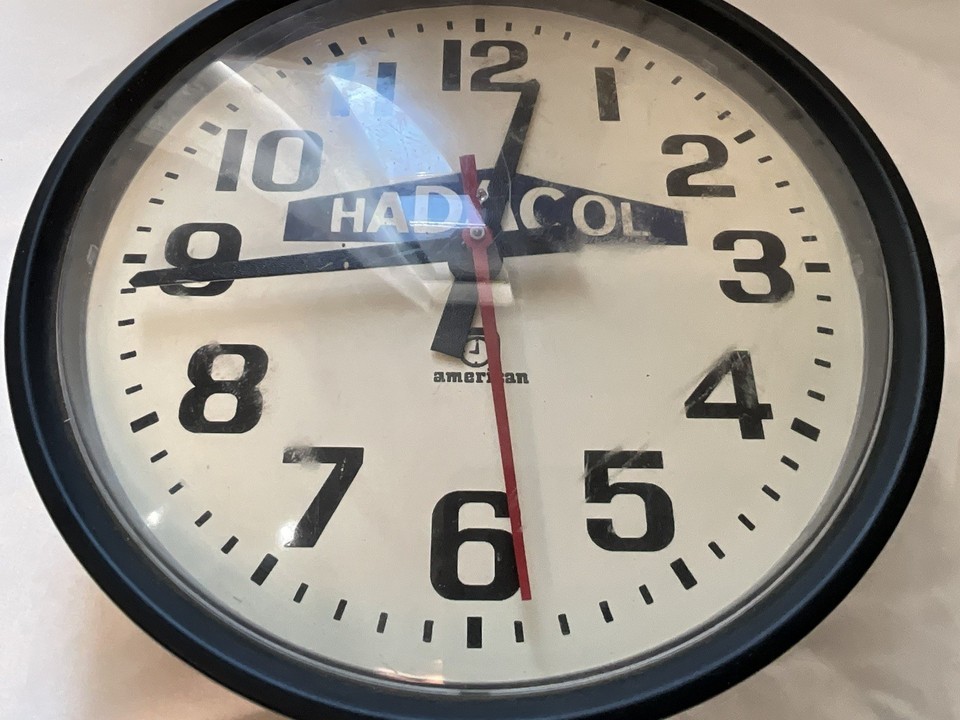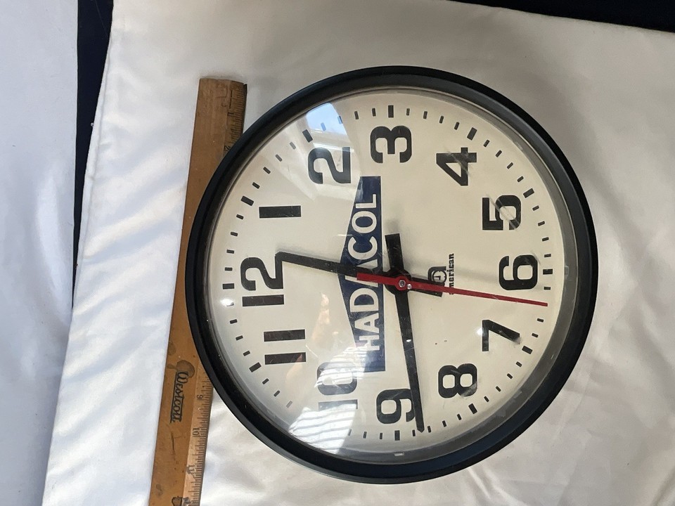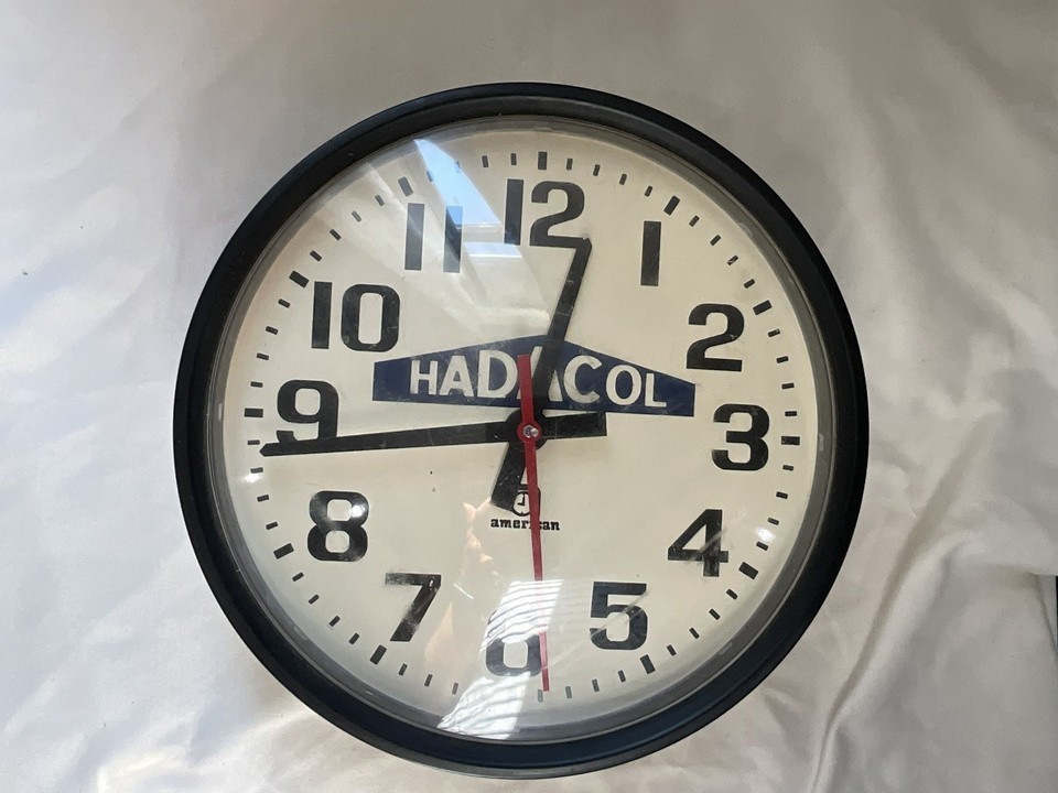 This is a vintage advertising clock for Hadacol. The drug was popular in the 1950s but I am not sure what year the clock is. This is a wall clock with a Synchron motor on the back and appears to be in good condition. This clock is NOT TESTED. There are no cracks or chips on the front of the clock, but there is a small scruff on the front as shown in the pictures. This is rare clock advertising Hadacol and great for a collection.