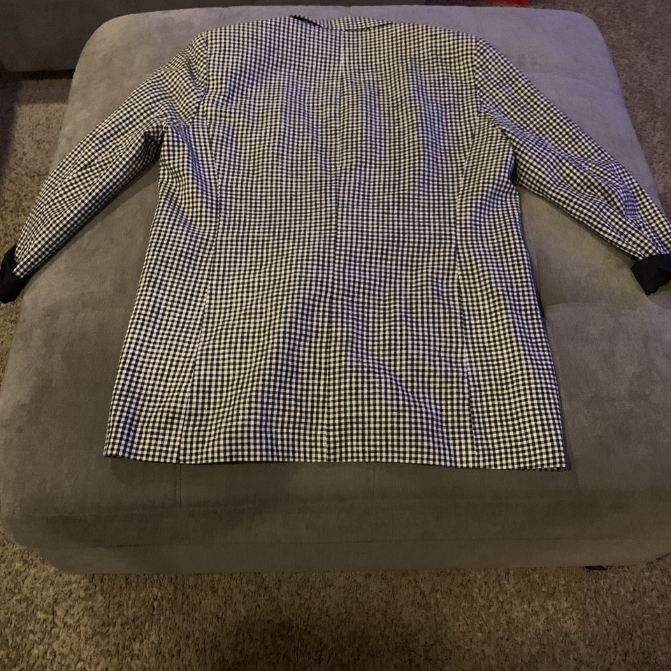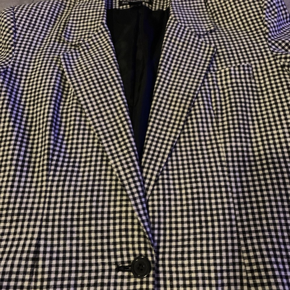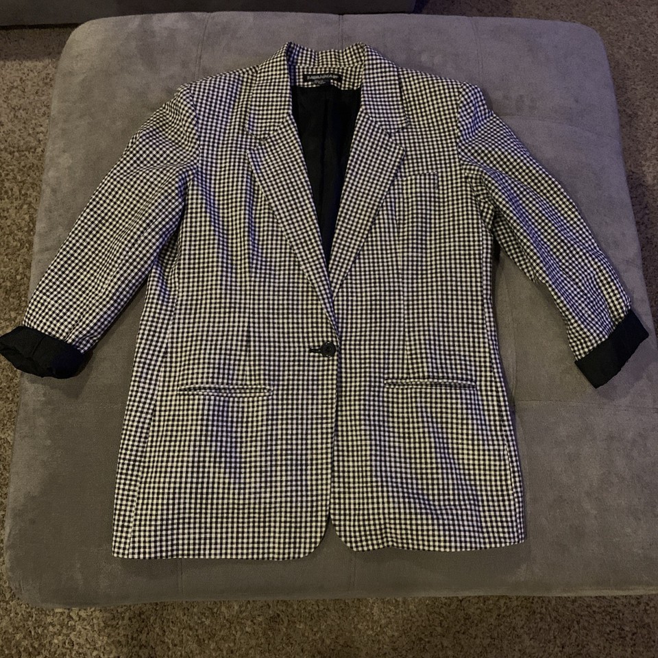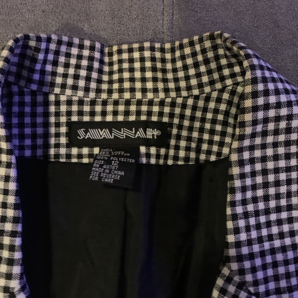 VTG Savannah Linen Blend Blazer Women 12 Gingham Plaid Black White Check Career