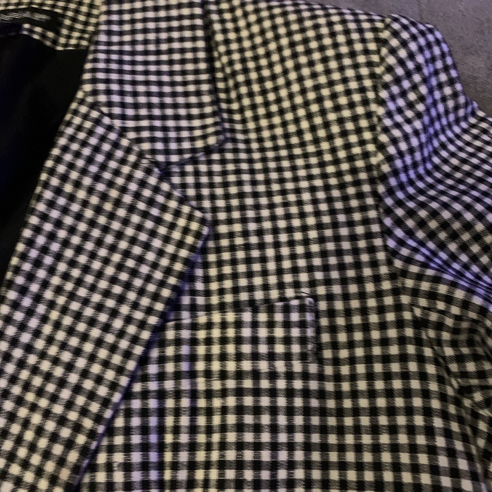 The VTG Savannah Linen Blend Blazer is a stylish and versatile women's jacket in size 12, featuring a classic black and white gingham plaid check pattern. Made from a comfortable linen blend outer shell and lined with polyester, this mid-length blazer has a button closure and long sleeves, making it suitable for various occasions including parties, casual outings, formal events, workwear, and business meetings. With a timeless preppy and classic style, this blazer is perfect for all seasons and can be dry cleaned for easy maintenance. Perfect for adding a touch of sophistication to your wardrobe.