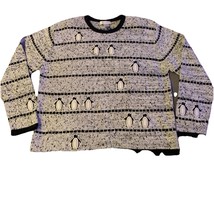 VTG Christopher & Banks Womens Sweater Gray Black Penguin Christmas Winter Lrg