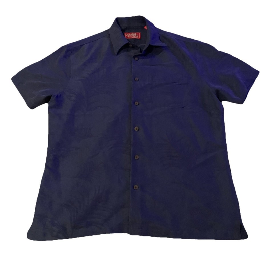 Woodys Retro Lounge Mens L Tropical Button Down Short Sleeve Navy Palm Print