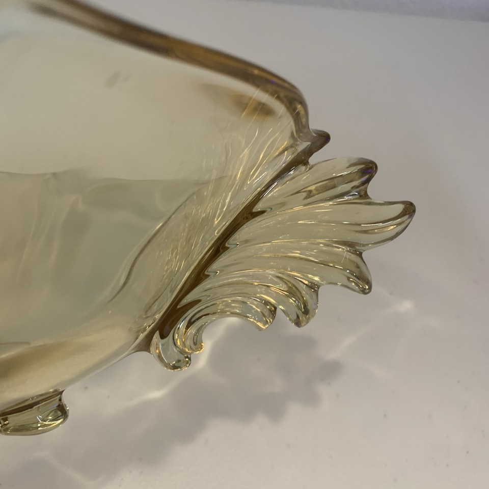 Vintage 70's Yellow Glass Footed Fruit Bowl Large 11” MCM Glass Serving Bowl