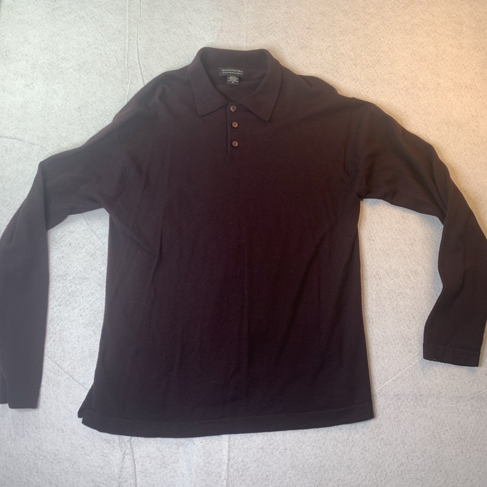 Banana Republic Extra Fine Italian Merino Wool Burgundy Long Sleeve Polo Read