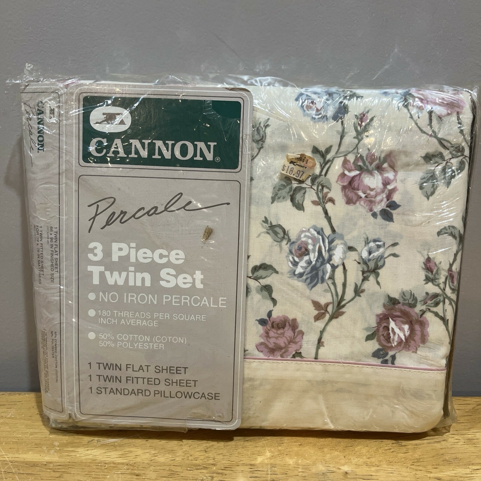 Keywords: Cannon, Percale, Sheet Set, Twin, Floral, Roses, Vintage, No Iron, Bedding, Bedroom, Cottagecore, 3 Piece, New in Package