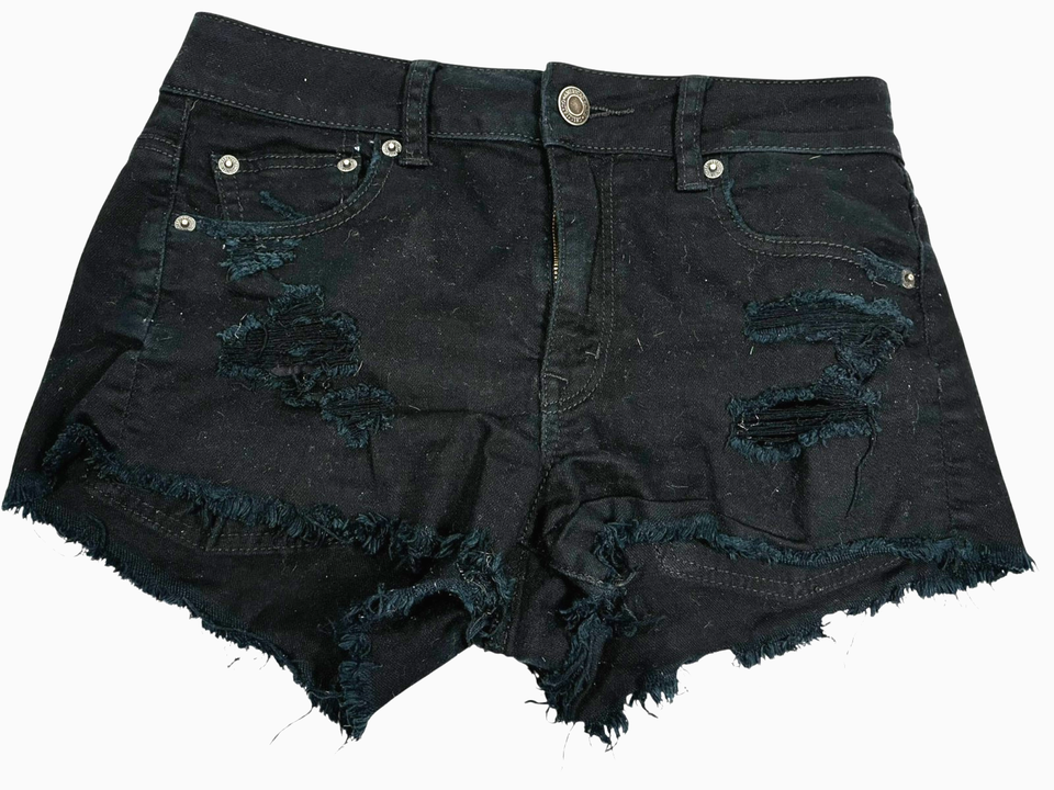 american eagle outfitters AEO stretch ripped cut off black denim short shorts size 4