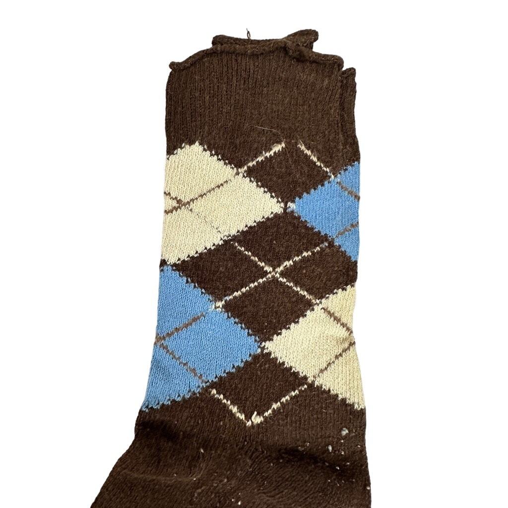 The brown argyle pair shows light wear and feels like all cotton (slightly thinner), while the others appear to be cotton/nylon or acrylic blends typical of the late 1950s.