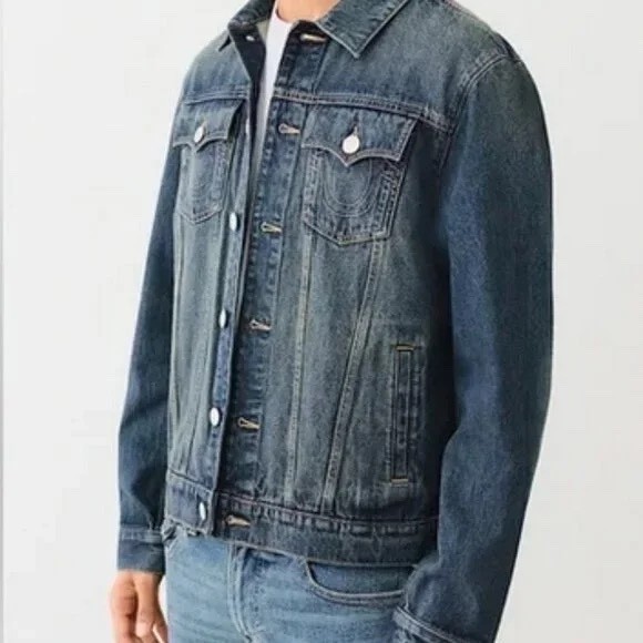 NWT men's XXL True Religion Jesse Denim Trucker Jean Jacket Dark Smoky Wash