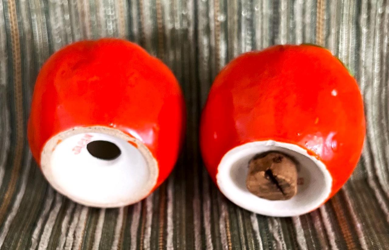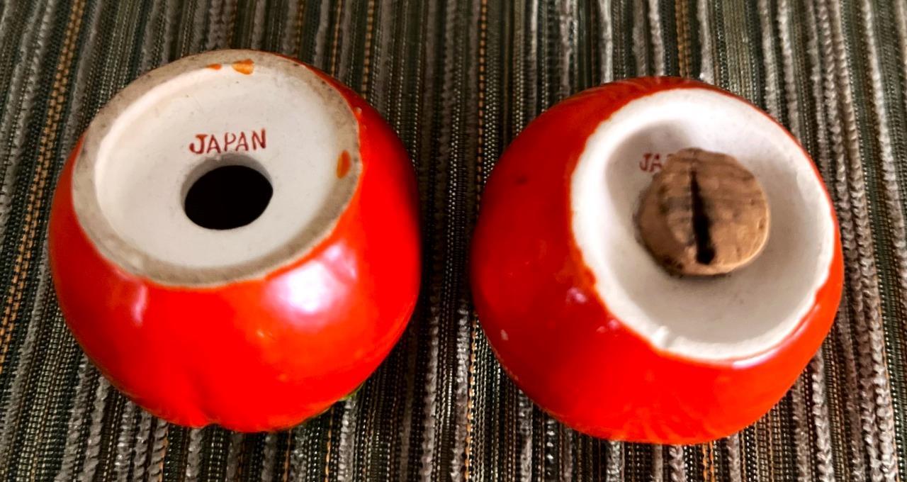 Vintage Novelty Mini Tomato Salt & Pepper Ceramic Shaker Cork Stoppers Japan