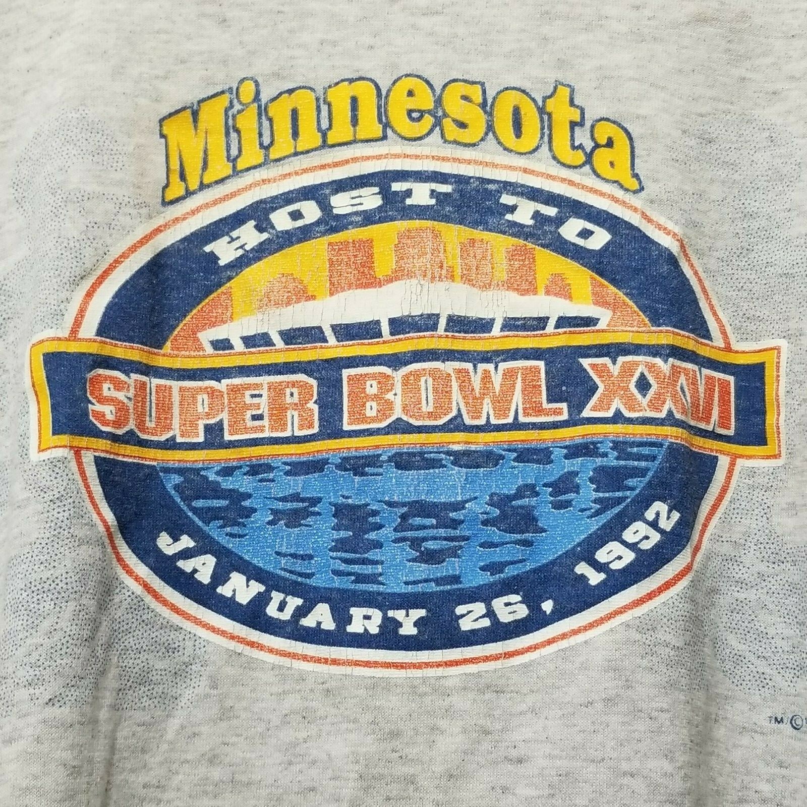 Vintage Trench Minnesota To Host Super Bowl XXVI 1992 Gray T-Shirt USA Mens M