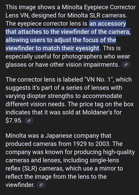 Vintage Minolta +0.5 Eyepiece Corrector Lens and similar items