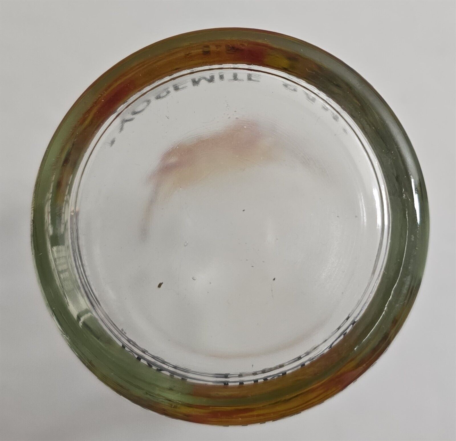 This sale is for a vintage glass, good to excellent used condition, no cracks, no chips, no crazing, very little to no color wear, very little to no paint wear, came out of a box in the barn, dirty and needs to be cleaned, measures approximately 3" top diameter tapers to 2 1/4" bottom diameter x 6 1/4" high, from a smoke free home.