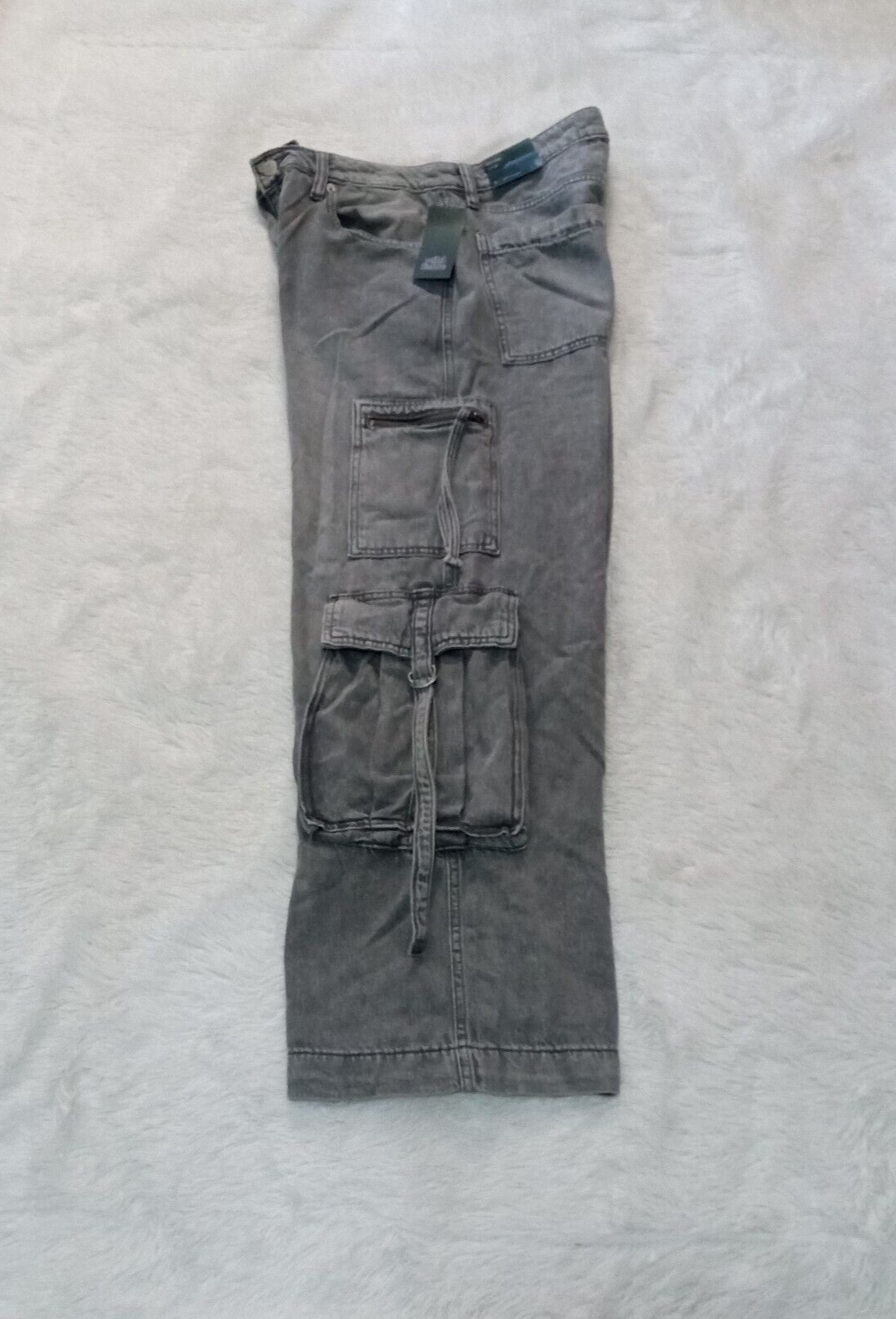 Women's Mid-Rise Wide Leg Cargo Baggy Pants (Size 12) GRAY WASH - NEW!!!