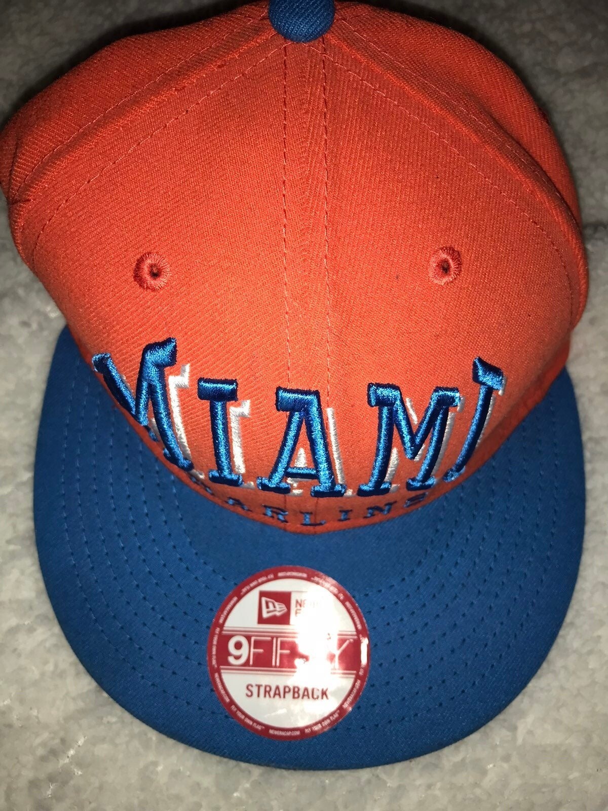 New Era 59 Fifty Florida Marlins Fitted Baseball Cap Size: Adjustable Color: Orange / Aqua Blue