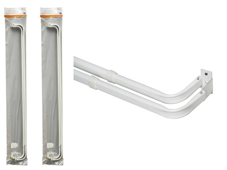 Double Curtain Rod 2'' Dia x 28'' To 48'' L Steel, White - Kenney KN521 (2-PACK)