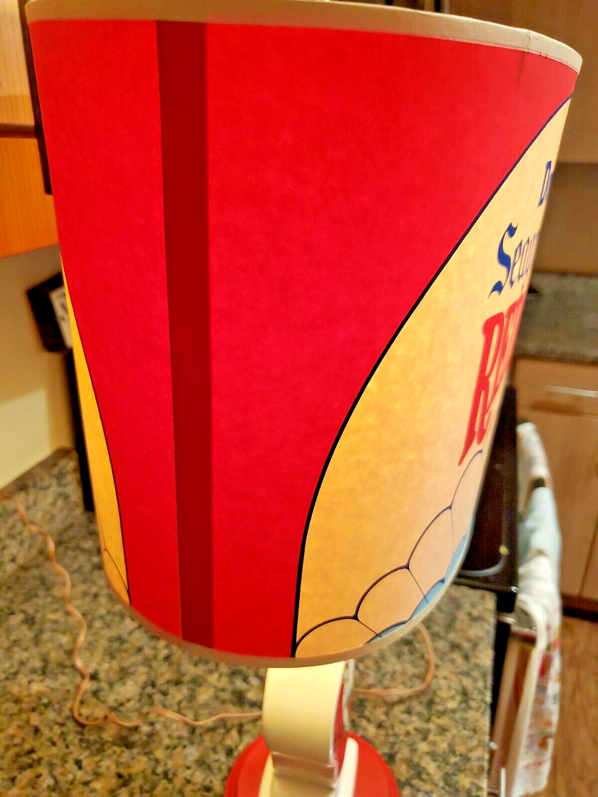 Perfect for your bar, pub, or collection! The lamp shade has a minor denting, paper ripple-see photo Plastic cover for the lamp included and how it has been stored