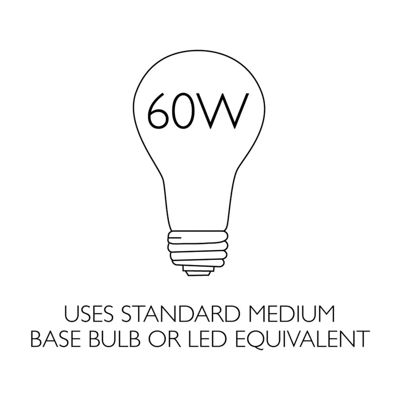 Uses (2) 60 Watt Medium base bulbs or LED equivalent per fixture (not included); Hardwired power source