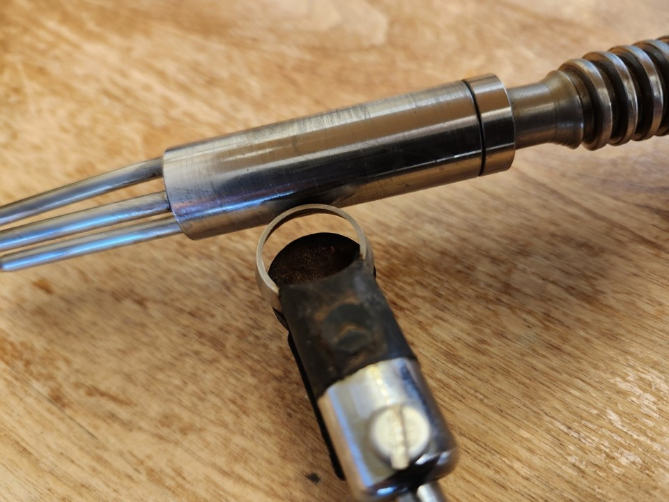 For immediate purchase is this Vintage Mallard Ferriere KALI Apple Peeler GUC - Missing slicing blade GUC. This item has been previously owned, works well for peeling apples, BLADE which slices apple is NOT included, can be purchased separately, some normal physical signs of wear, paint chips, scratches, etc.