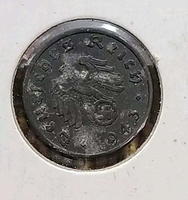 A little piece of history to add to your collection! This 1 Pfennig coin from Nazi Germany in 1943 has been circulated, giving it a unique and authentic feel. Perfect for any history buff or coin collector.