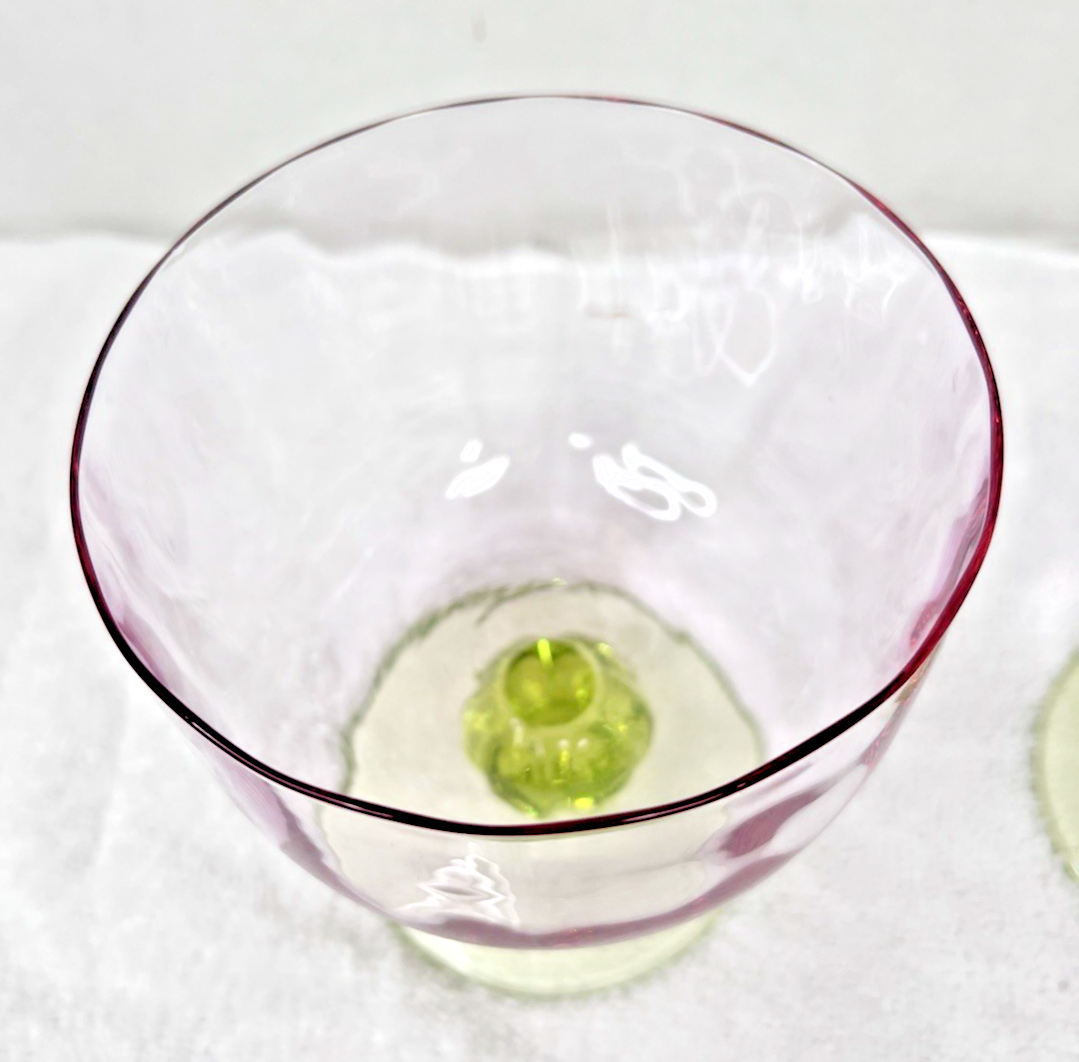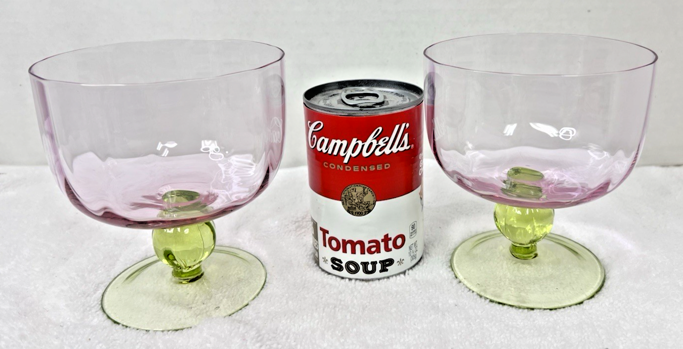 2PC Floradora Studio Nova Pedestal Fruit Dessert Bowl Watermelon Pink Green 5" T 4.5 W across top In amazing shape these would also work as a short Margarita Glass You get 2 and we have several pairs for sale, and we do combined shipping