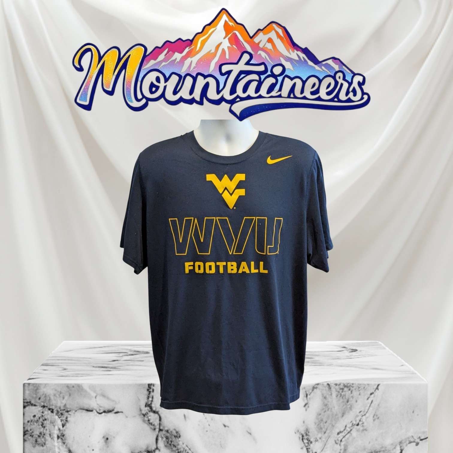 Nike T-Shirt Mens XL Blue Yellow WV West Virginia Mountaineers NCAA Football