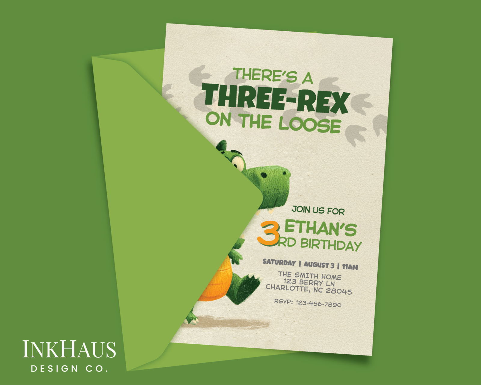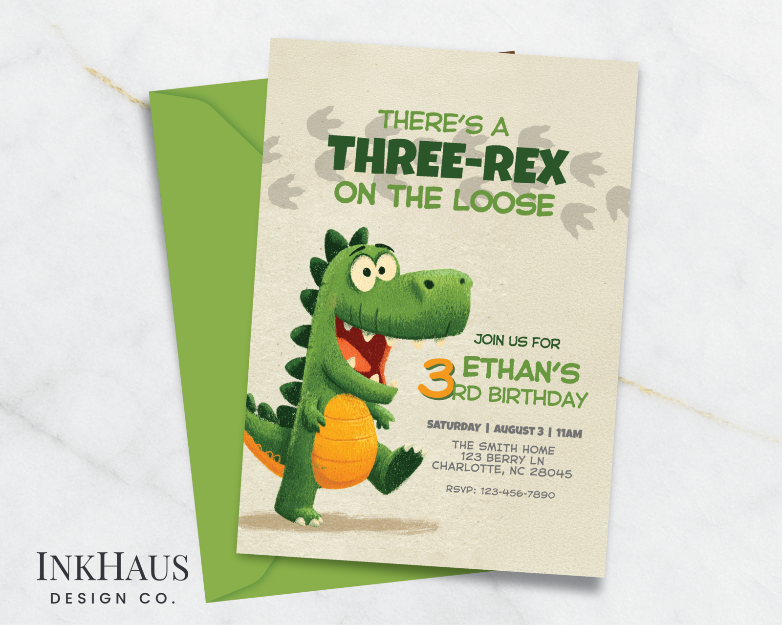 Editable T-Rex Birthday Invitation: Dinosaur Party Canva Template