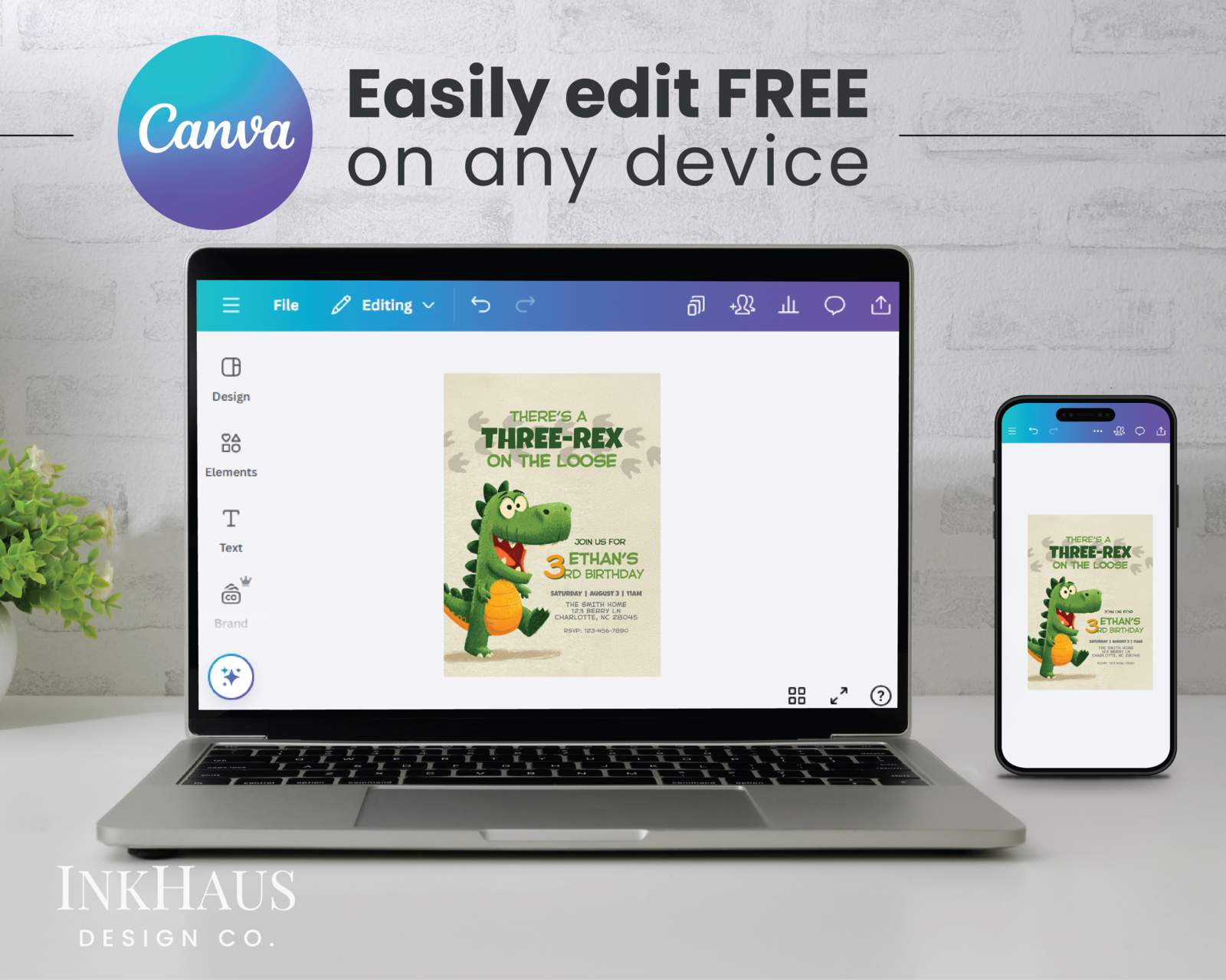 ROAR into fun with this cute T-Rex birthday invitation! This editable template is perfect for your kid's dinosaur party — cute, easy, and ready to make your child’s birthday unforgettable.