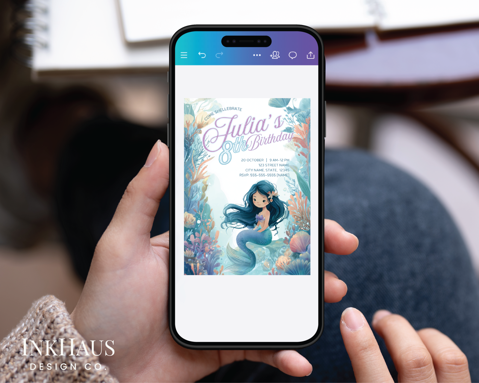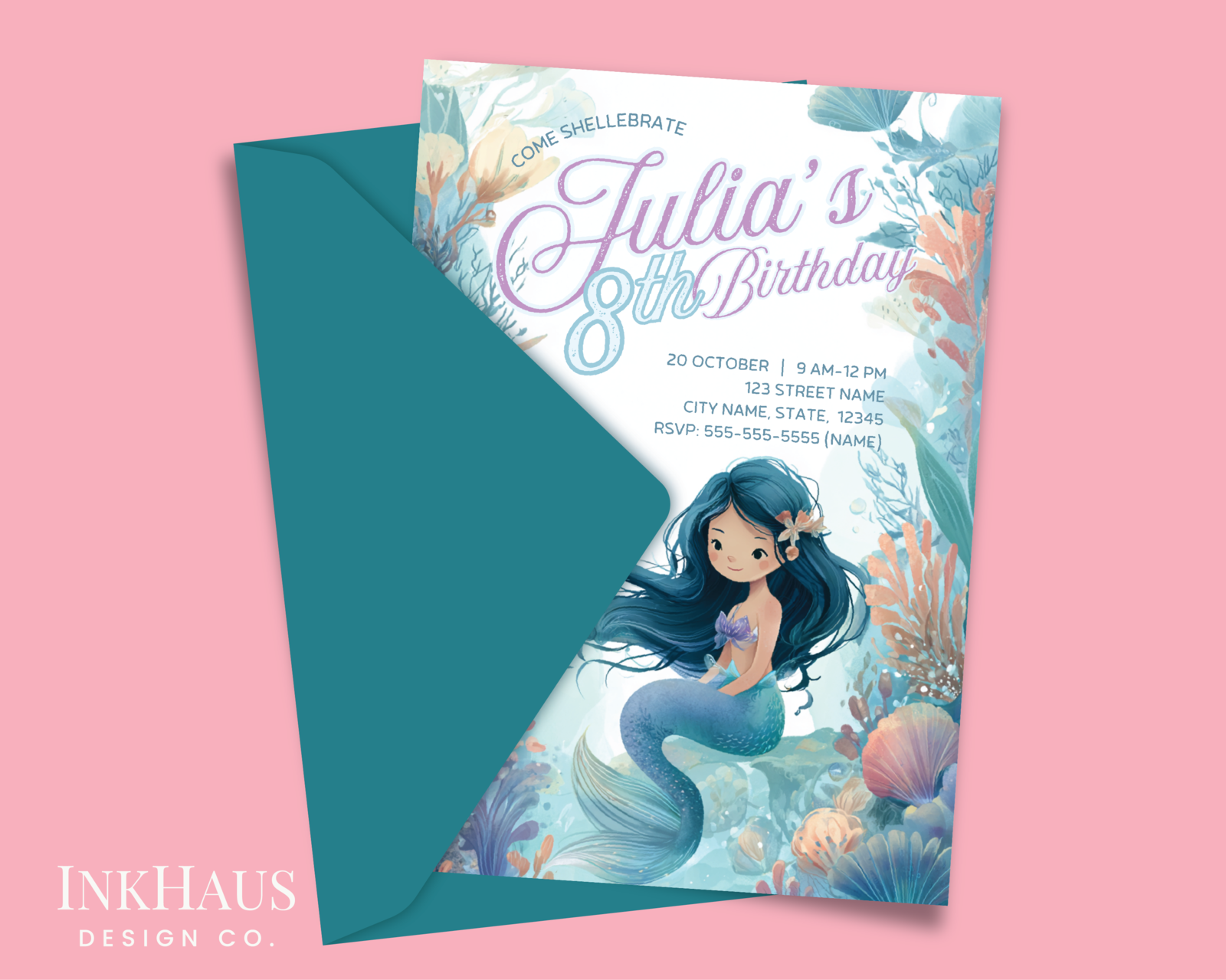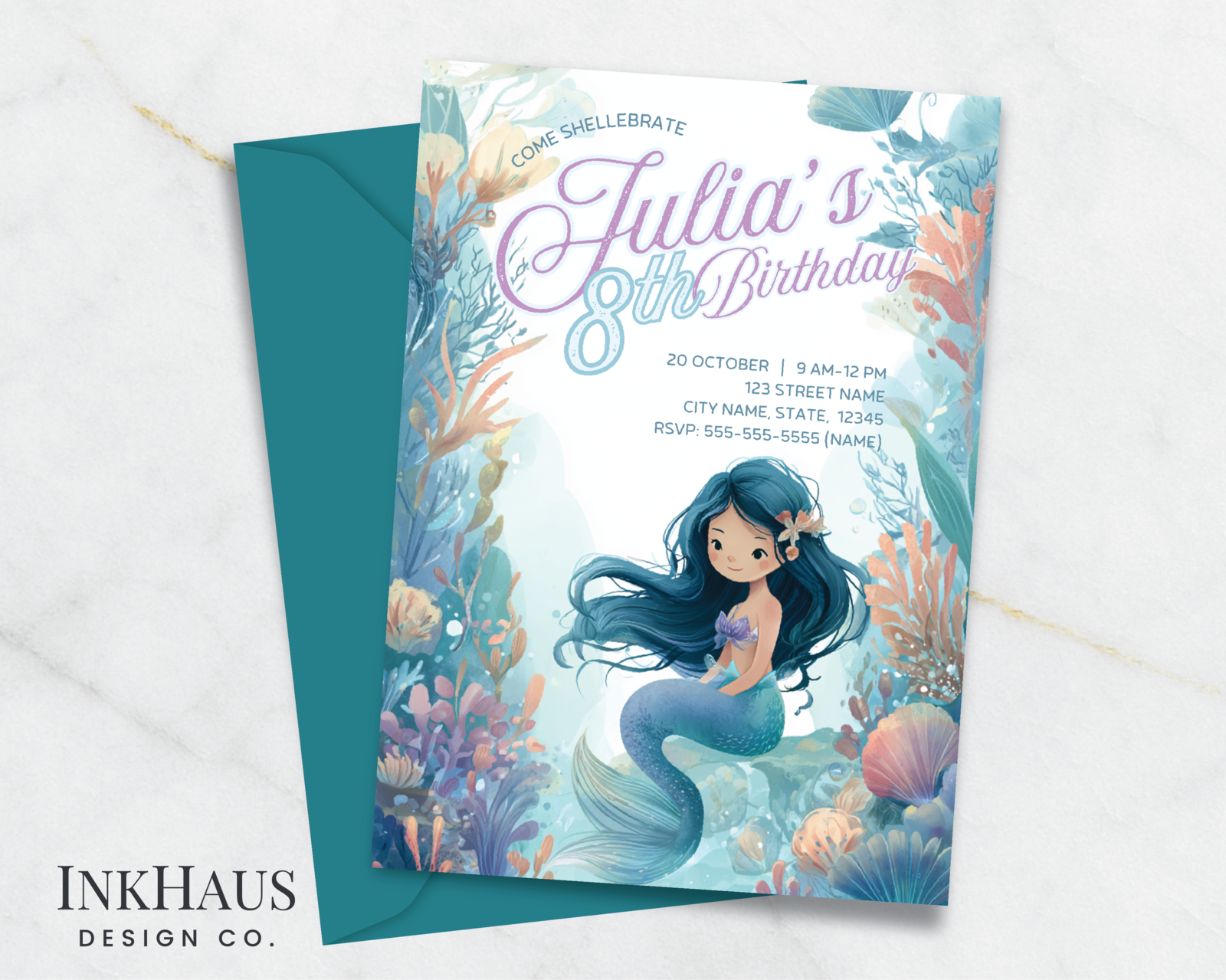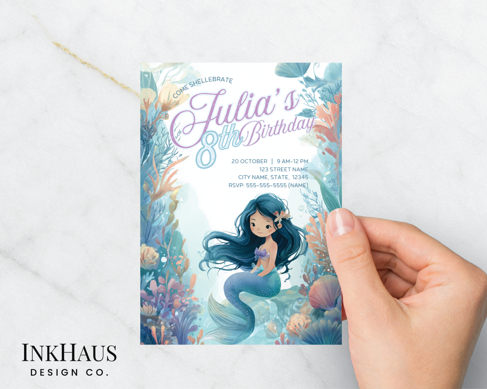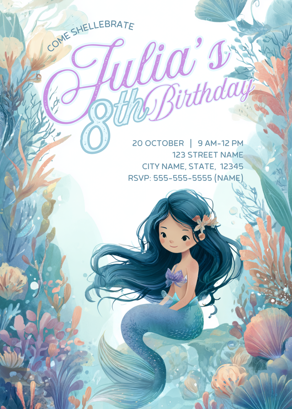 Editable Little Mermaid Birthday Invitation: Under the Sea Party Invite
