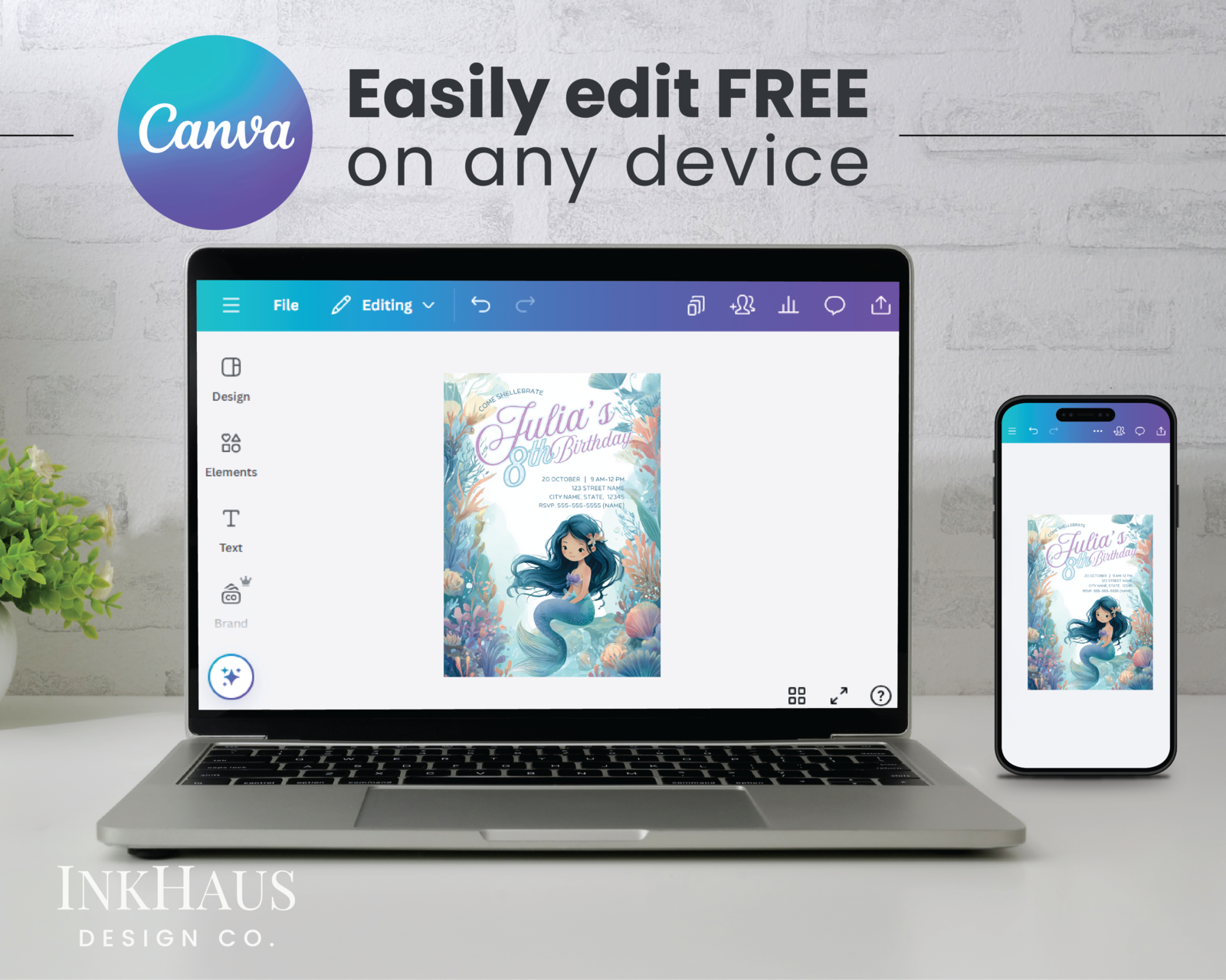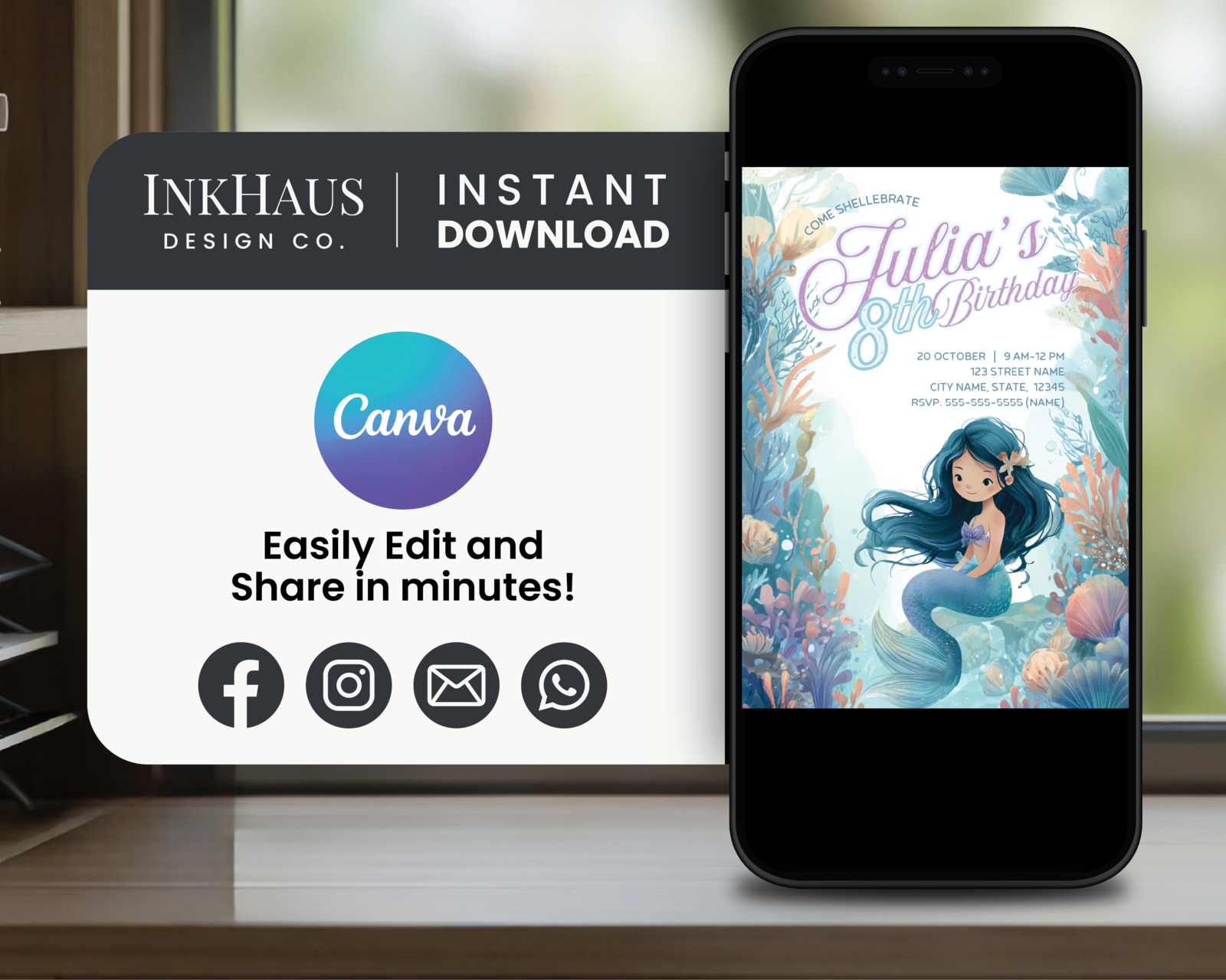 Editable Little Mermaid Birthday Invitation, Under The Sea Invite, Magical Little Mermaid Instant Download