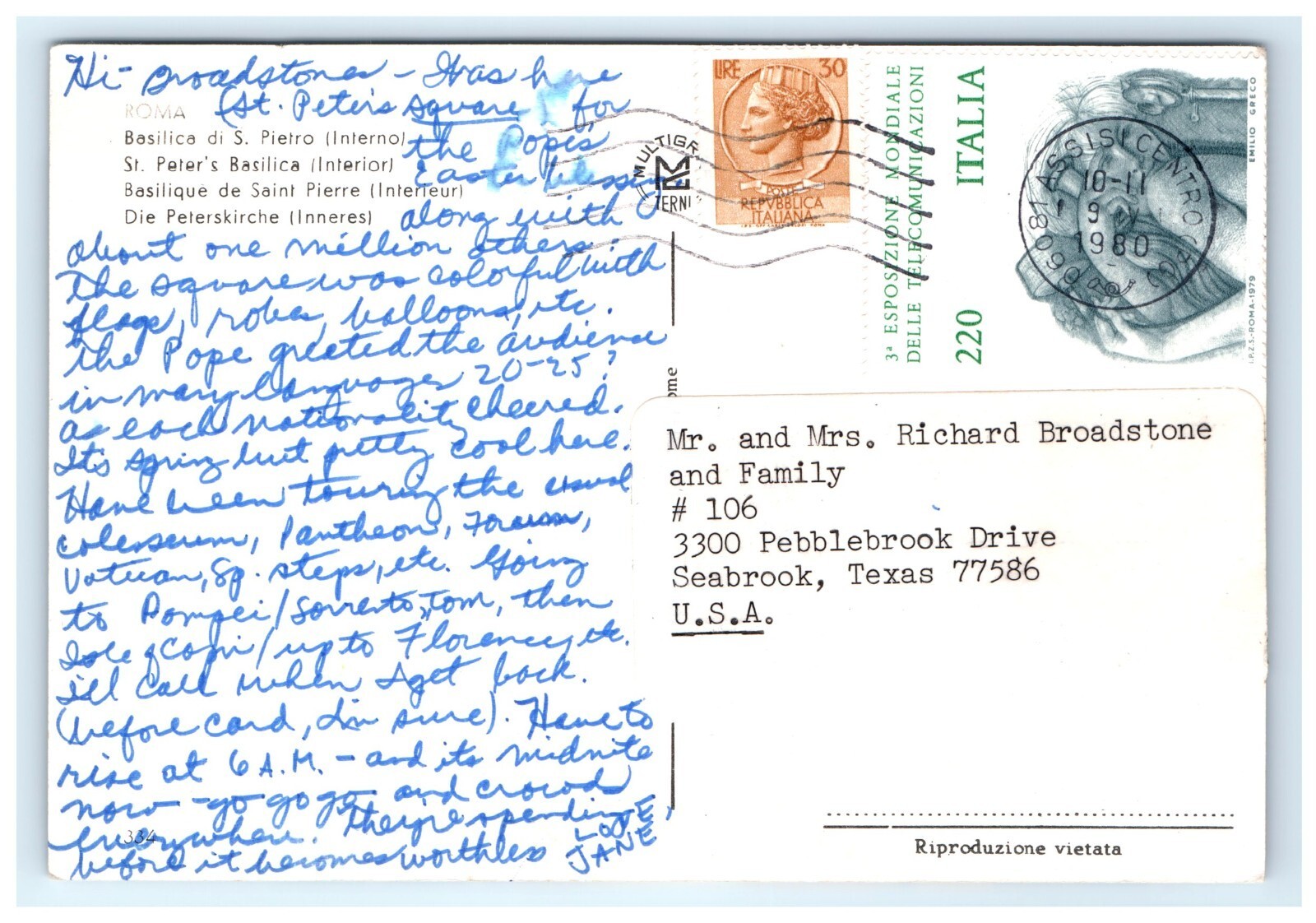 Vintage Divided Back Postcard Depicting the Interior of St Peters Basilica.