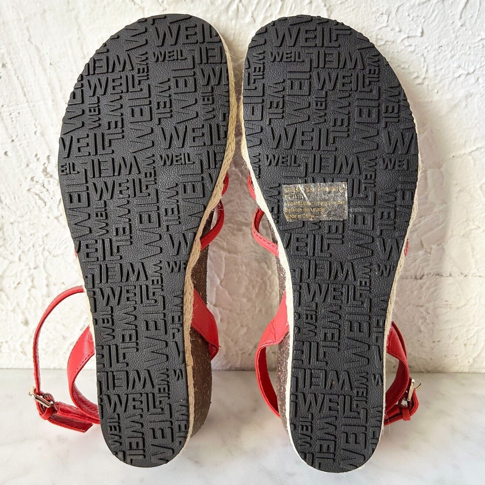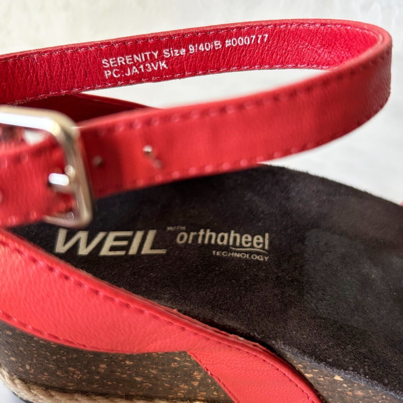 Weil Orthoheel Technology Red Serenity Sandal Ankle Strap Wedge Heel - Women's 9