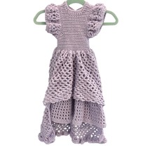 Handmade Lilac Crochet Baby Dress With Ruffle Sleeves Elegant Button Detailing