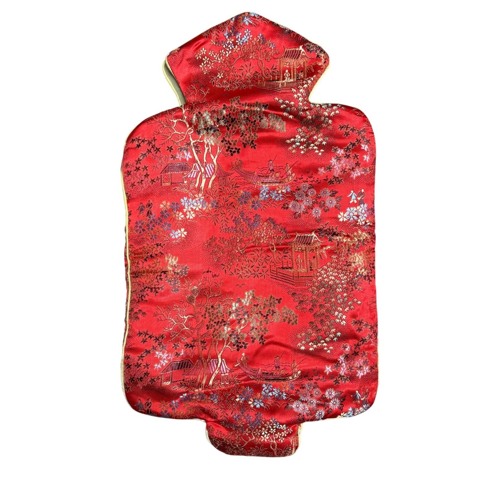 Vintage Red Asian China Silk Hot Water Bottle Cover Gold Floral