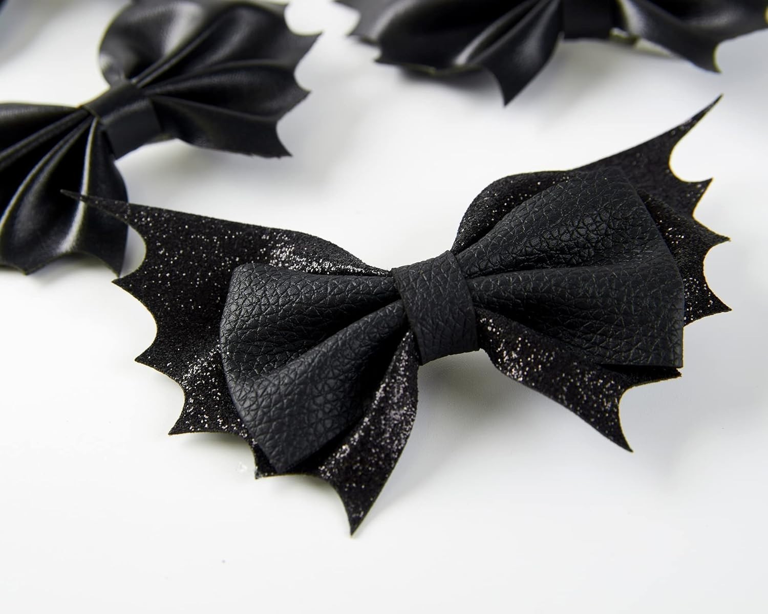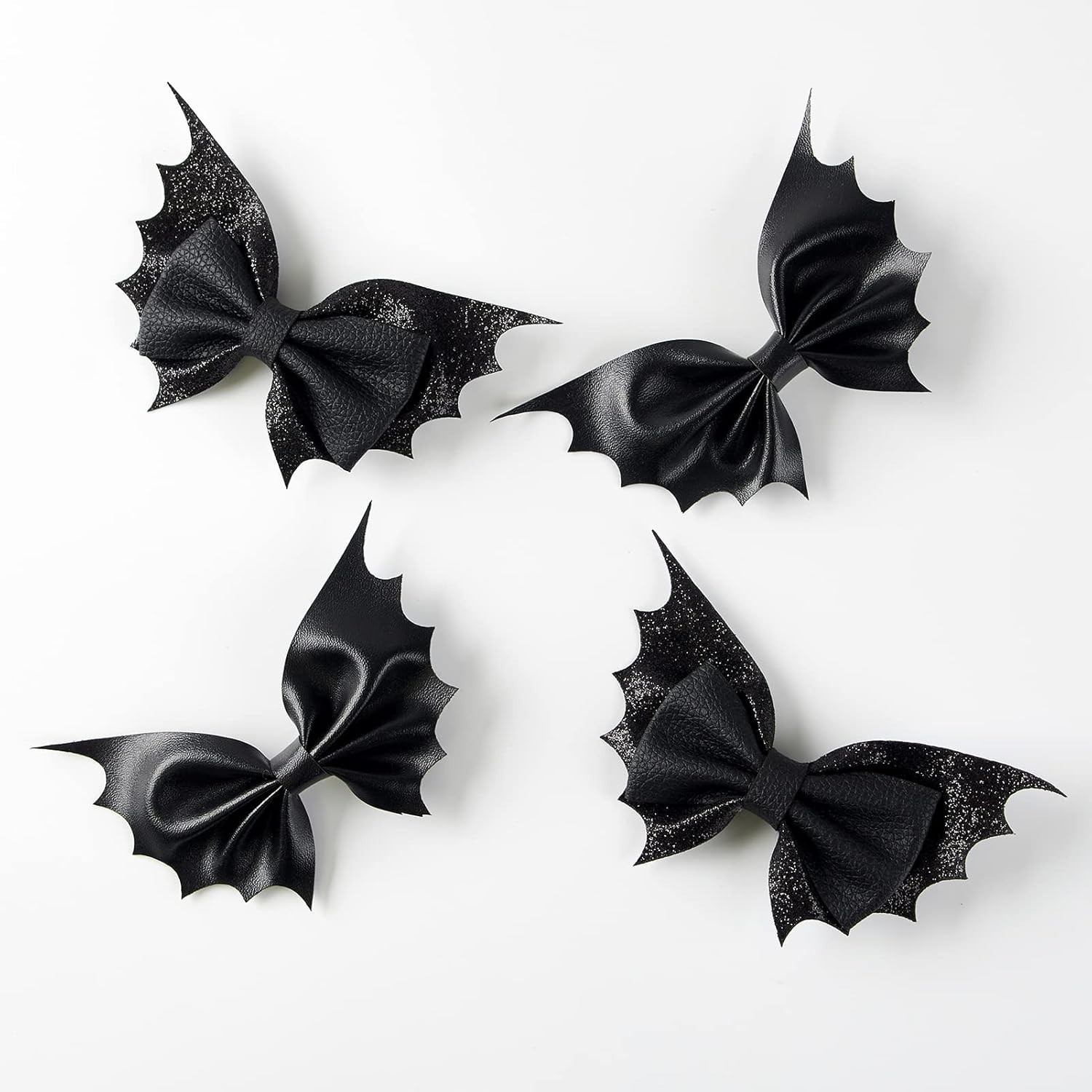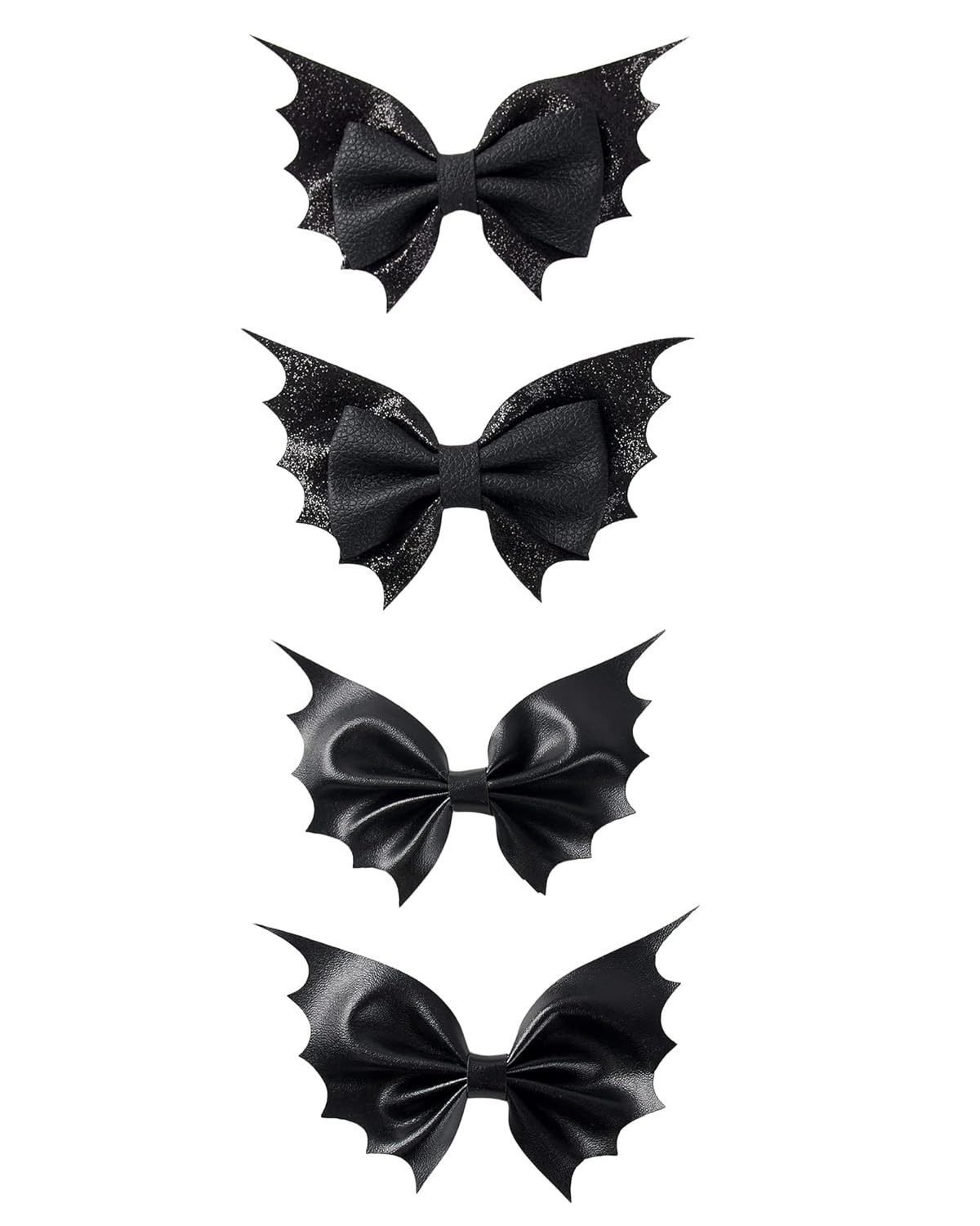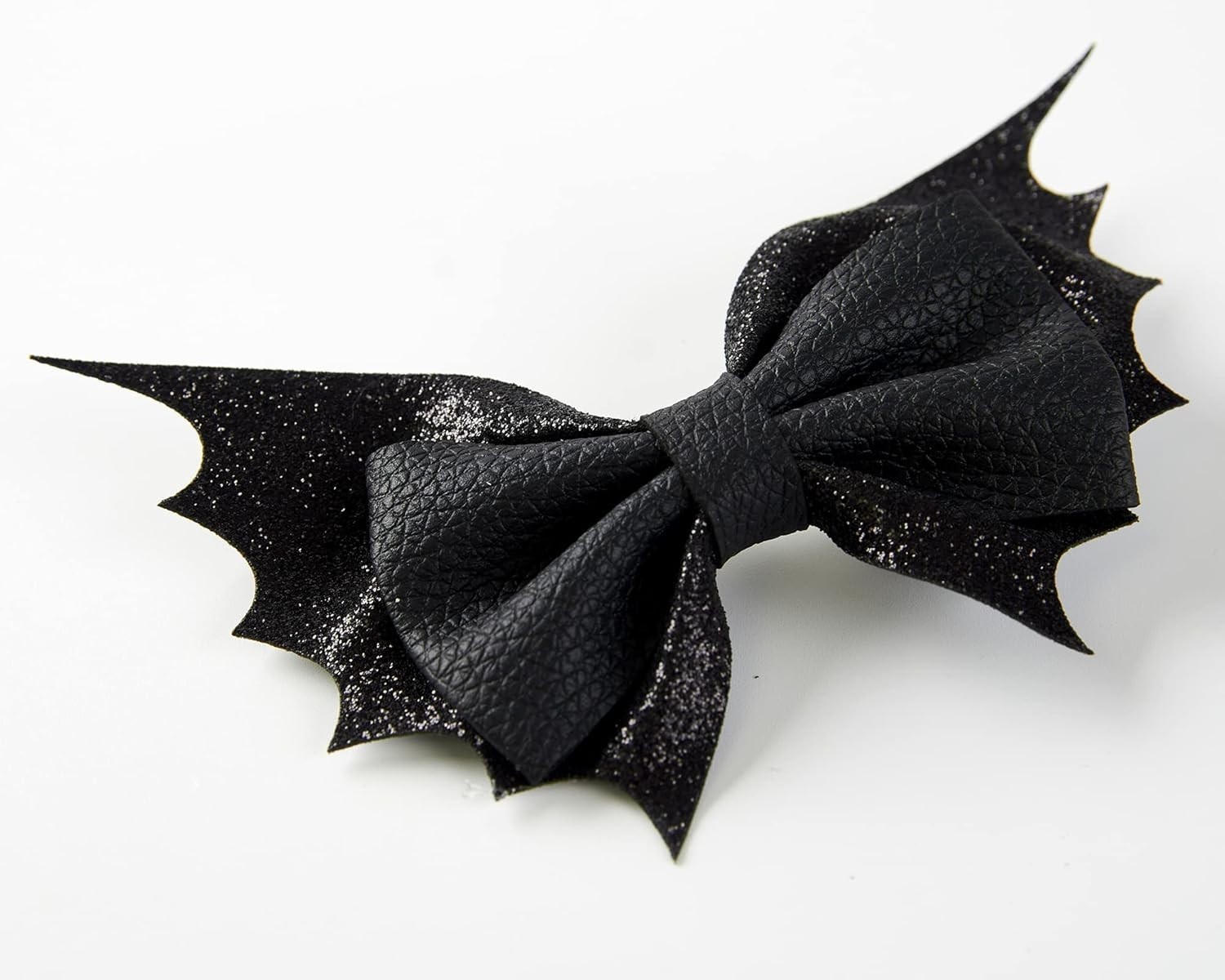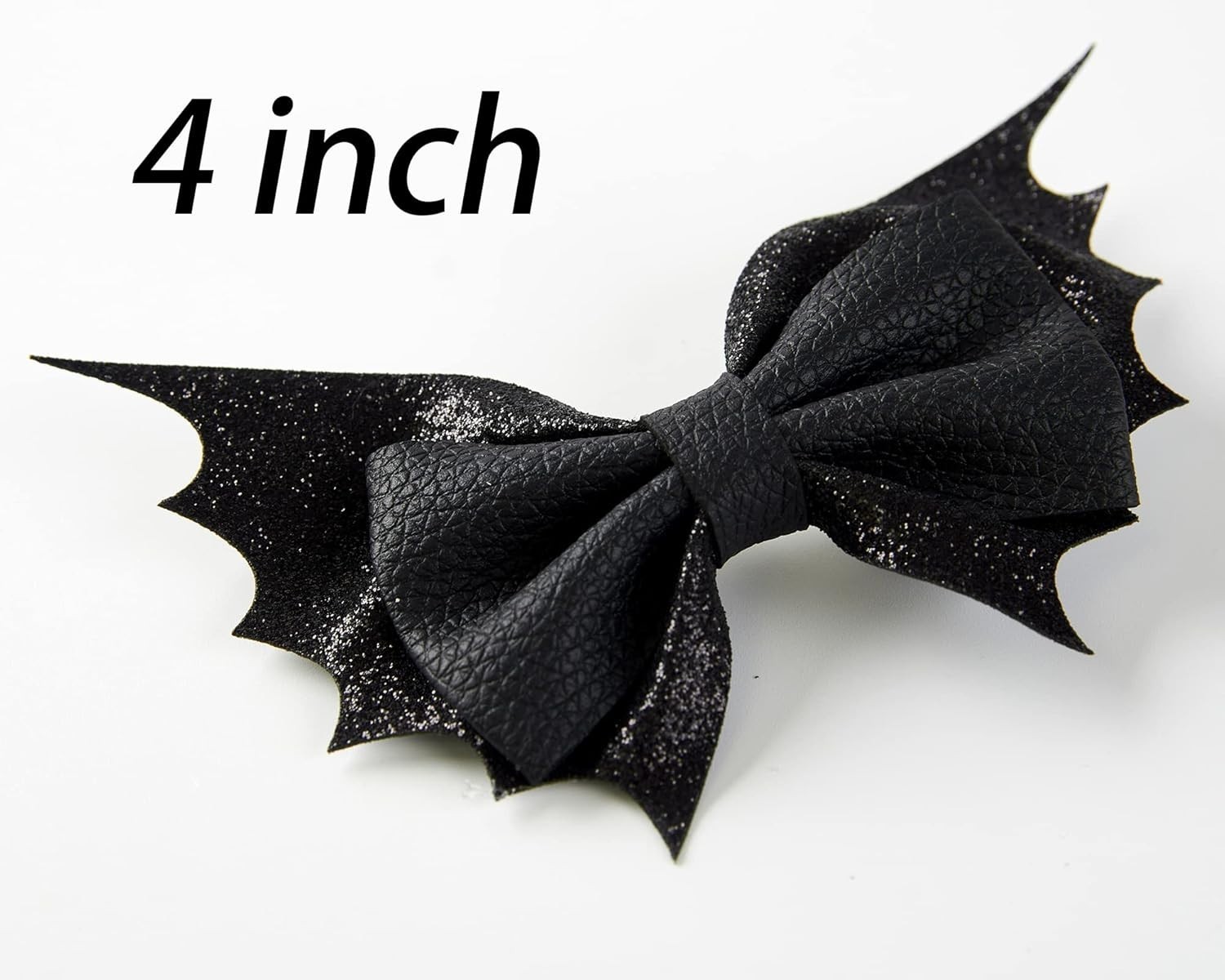 The bat hair bows are made of high quality glitter PU leather, attached with metal alligator clip.