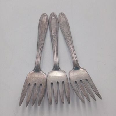 3 replacement Isabella antique silverplate salad forks. Good condition just needs a good polishing.