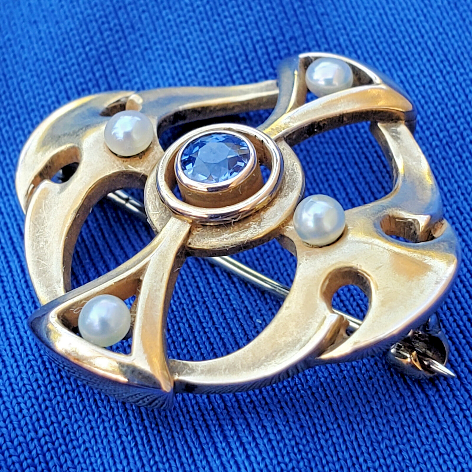 Earth mined Sapphire Deco Brooch 14k Gold Antique Geometric Gatsby Flapper era