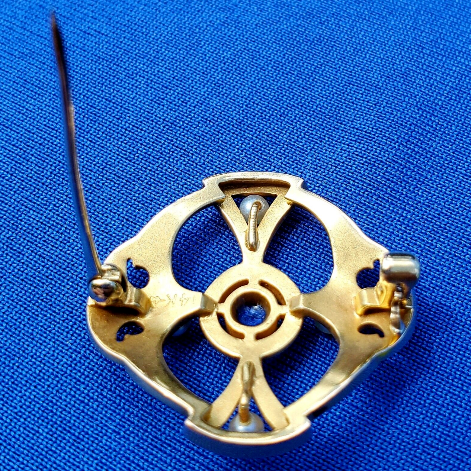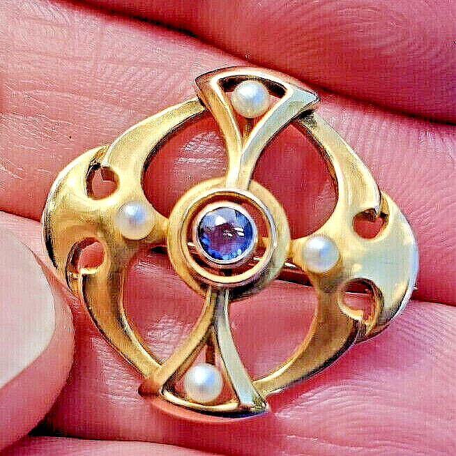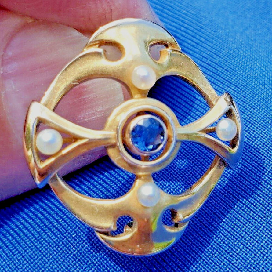 Earth mined Sapphire Deco Brooch 14k Gold and 44 similar items