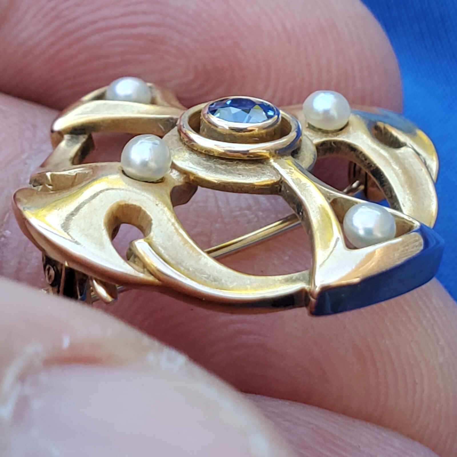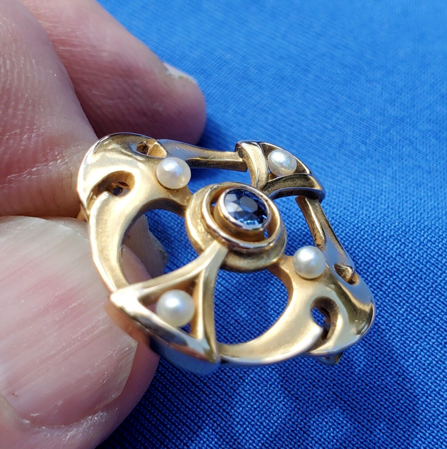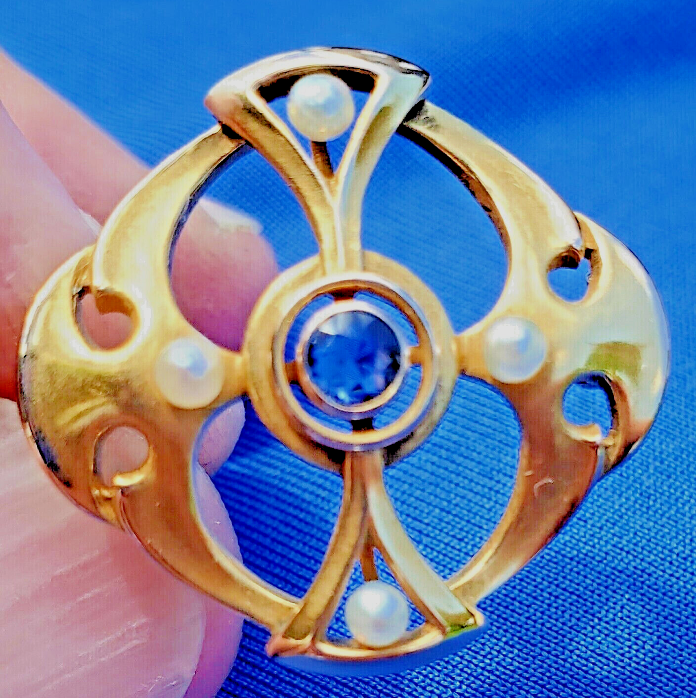 SAPPHIRE PEARL JAZZ ERA PIN OR REPURPOSE TO PENDANT.