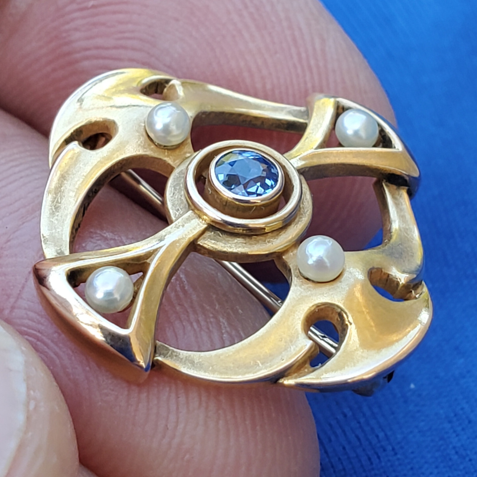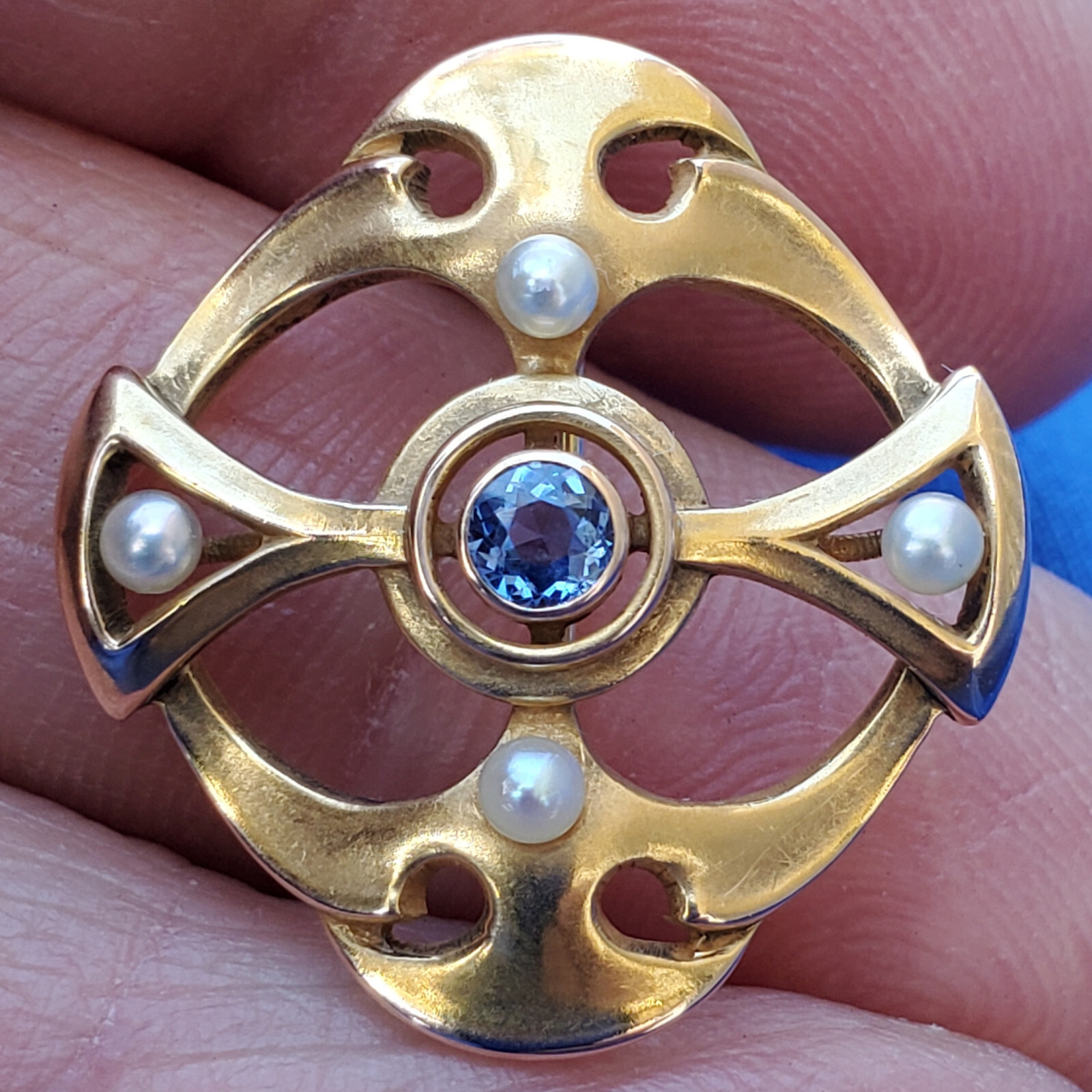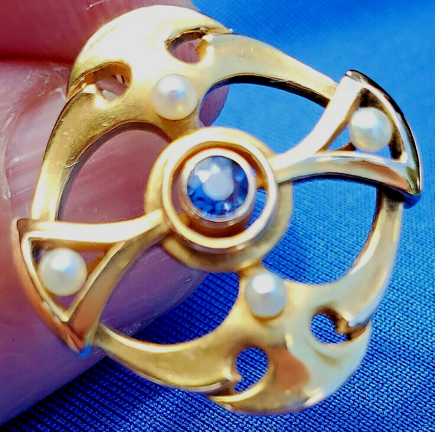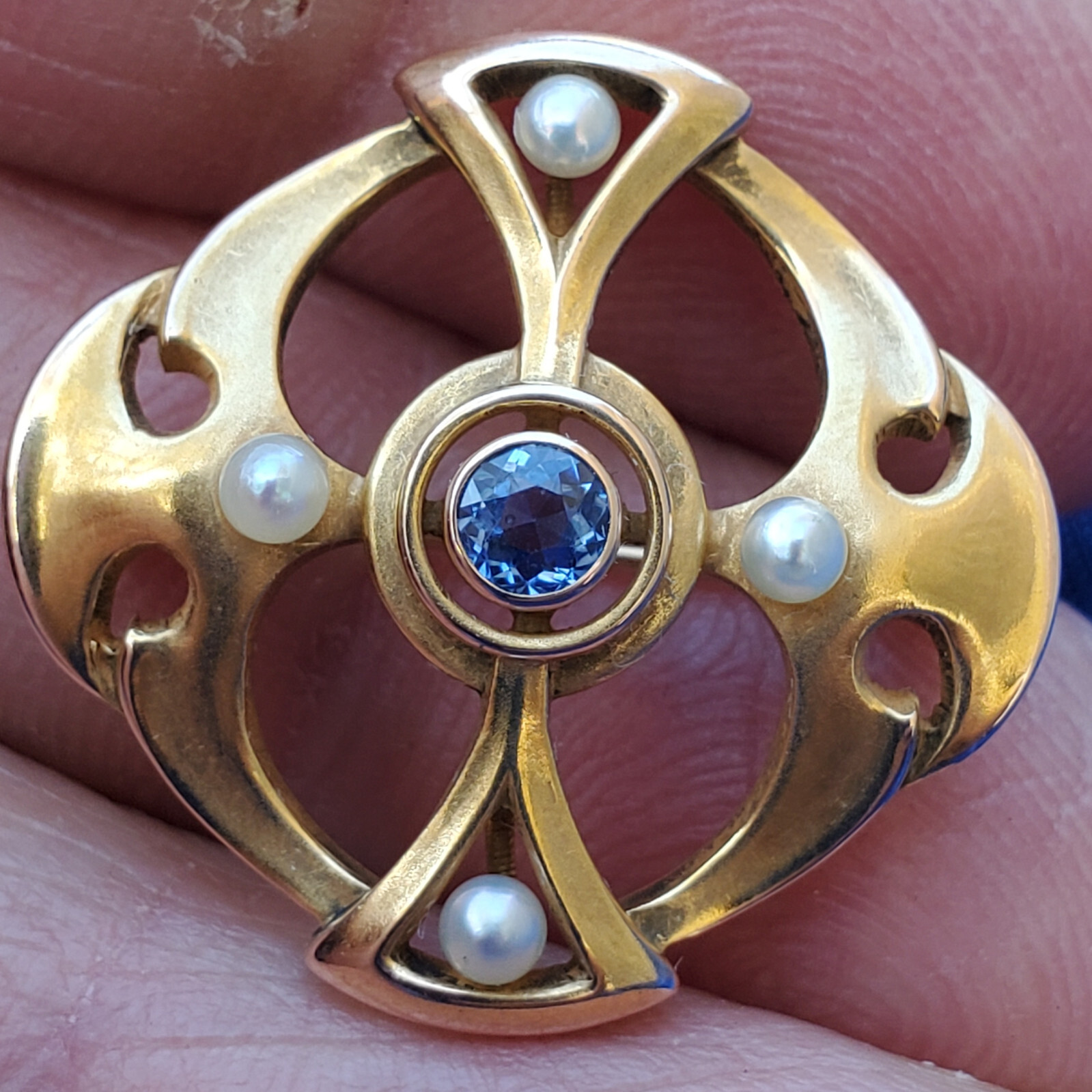 SAPPHIRE PEARL JAZZ ERA PIN OR REPURPOSE TO PENDANT.