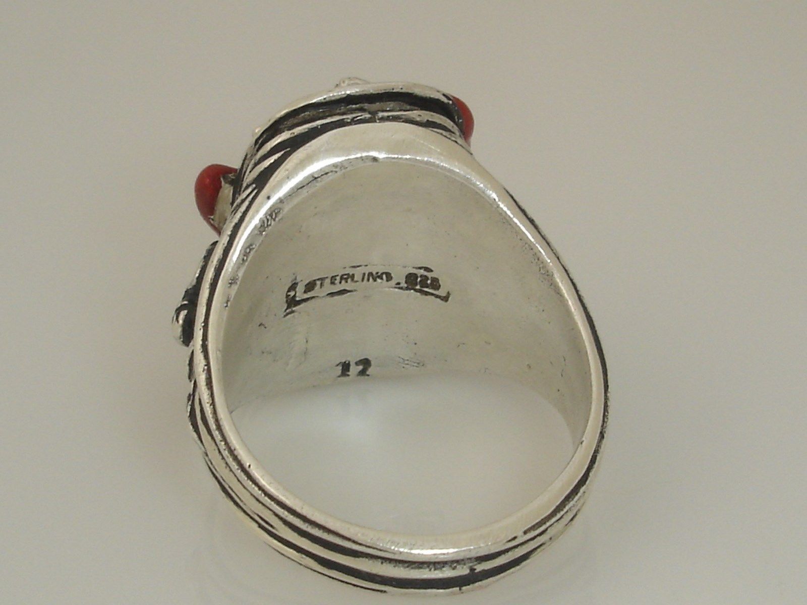 Purple Enameled 3-D sculpted Phantom top sporting twin .45's.Hero, side rearing horse accents x2,Sterling Silver Sterling silver worked fluted sides, and shank(bottom) HEAVYBUILT/USA