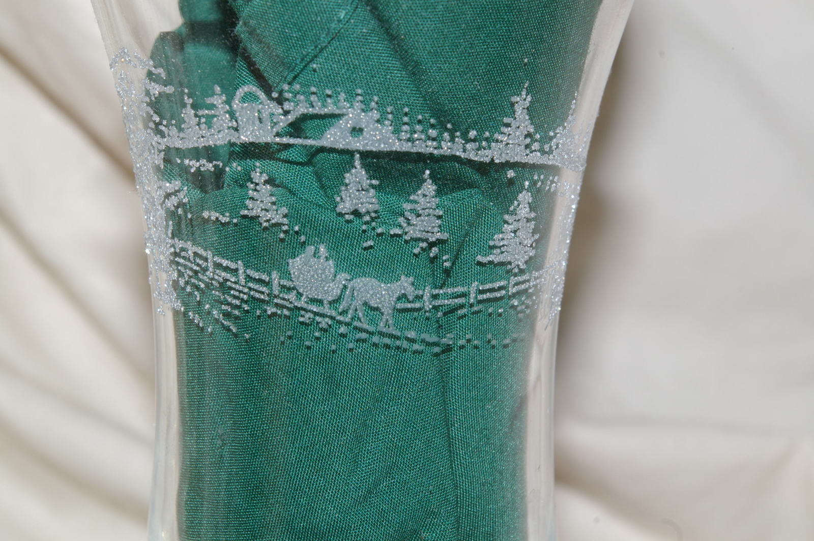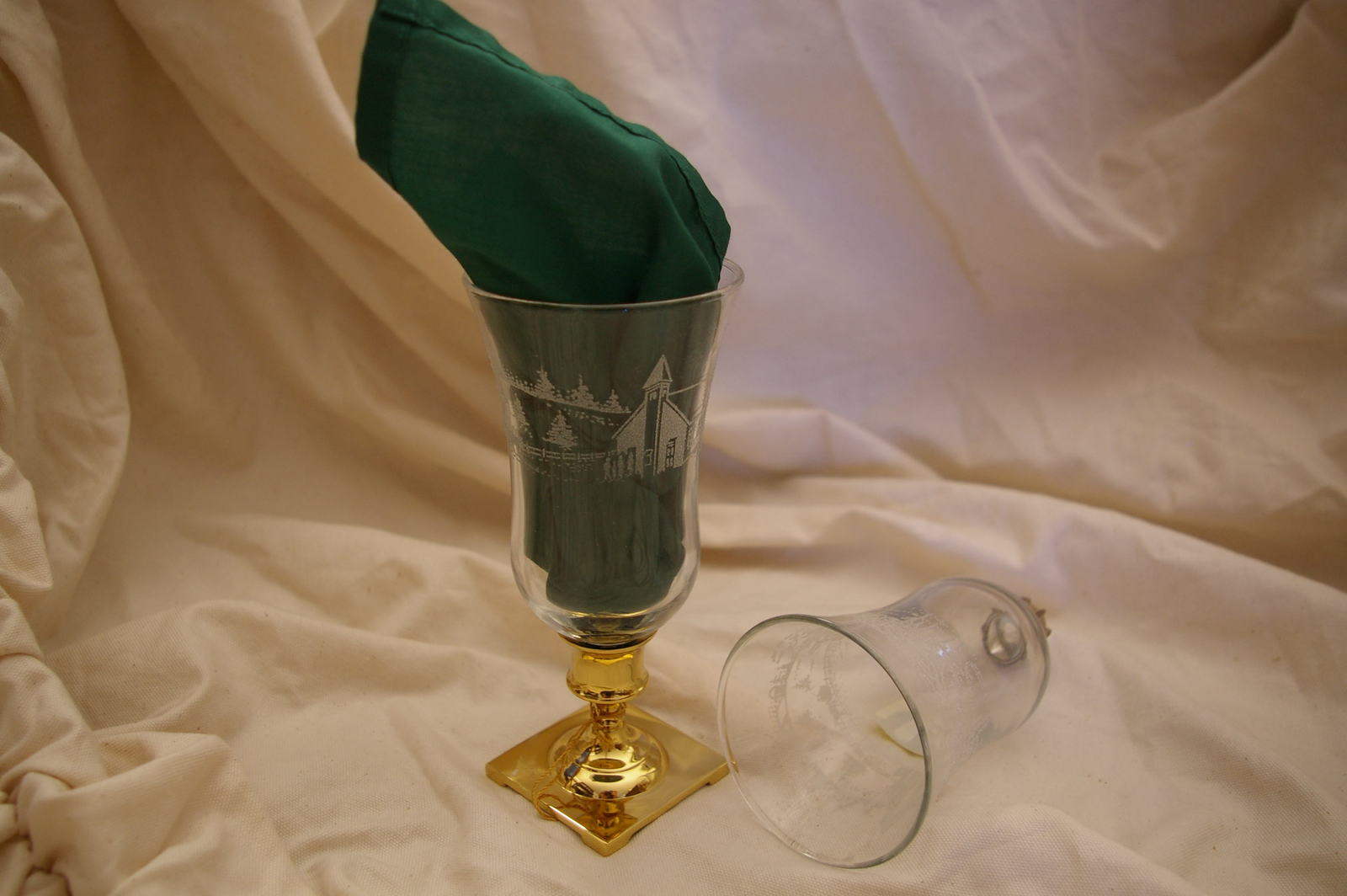 Two (2) Home Interiors Gifts / Homco votive cups with a etched church scene the sides of clear glass.