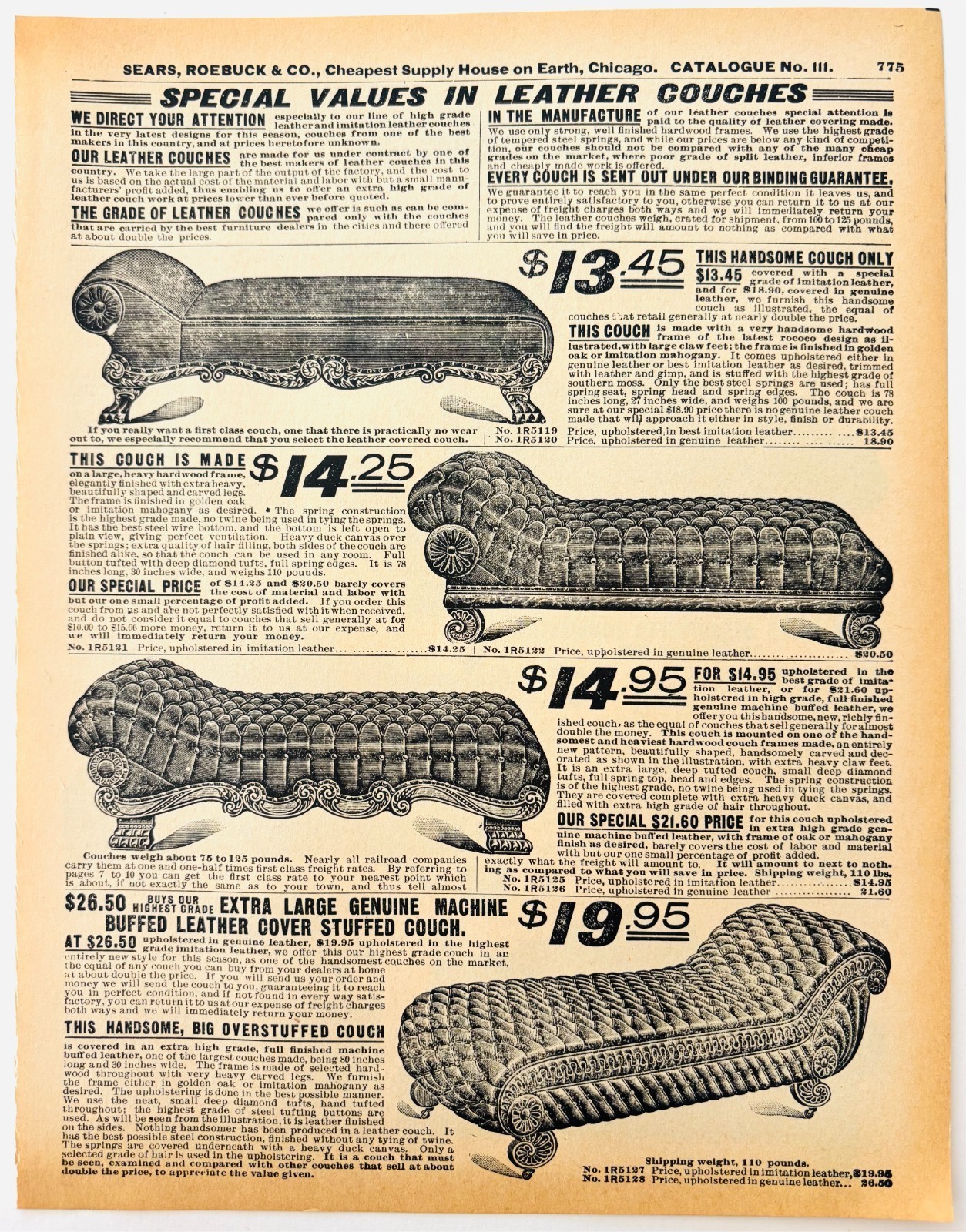 1969 High Grade Leather Couches 1901 Repro Advertisement Sears Furniture DWU17C