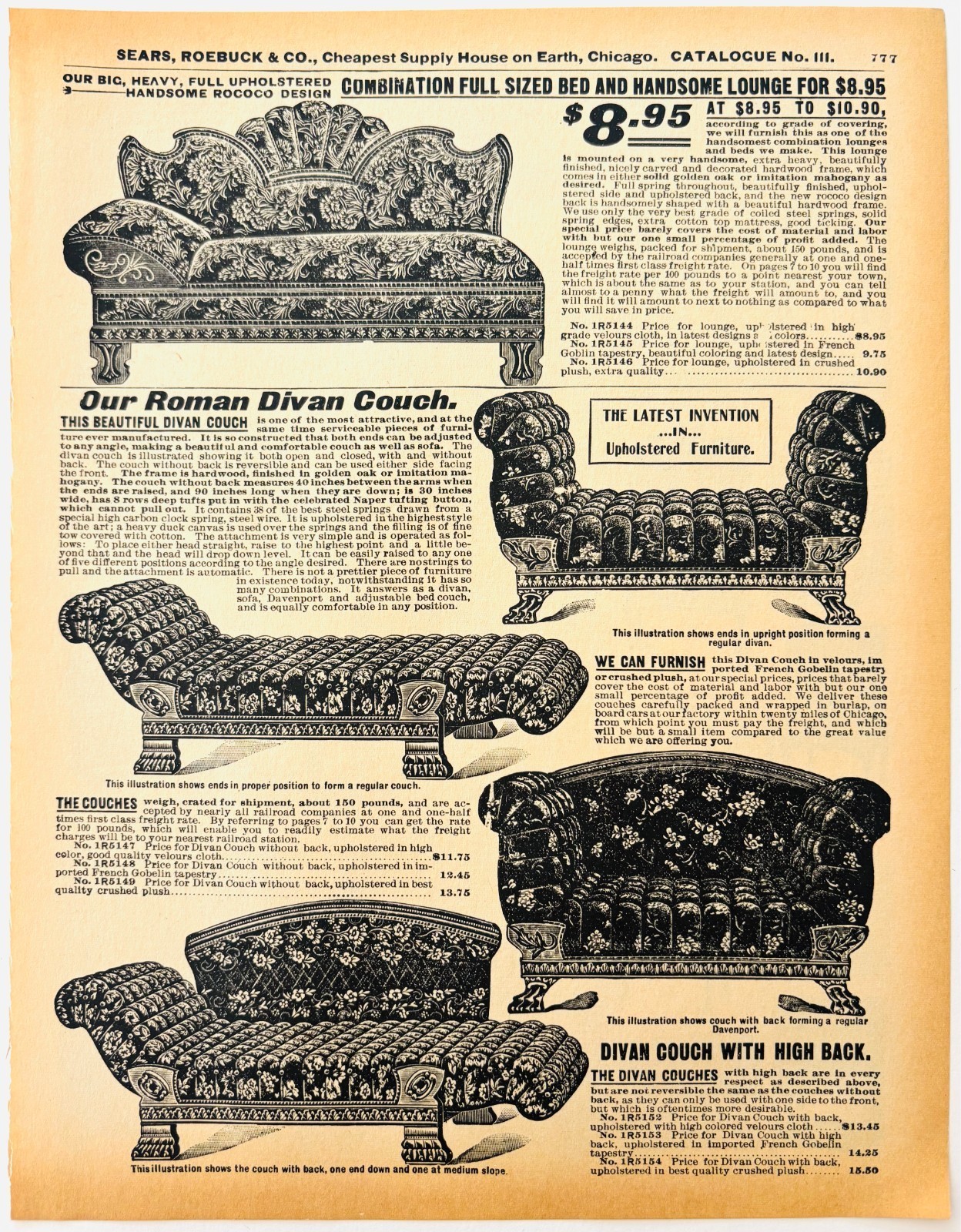 1969 Lounge Bed Combo Couches 1901 Repro Advertisement Sears Furniture DWU17D